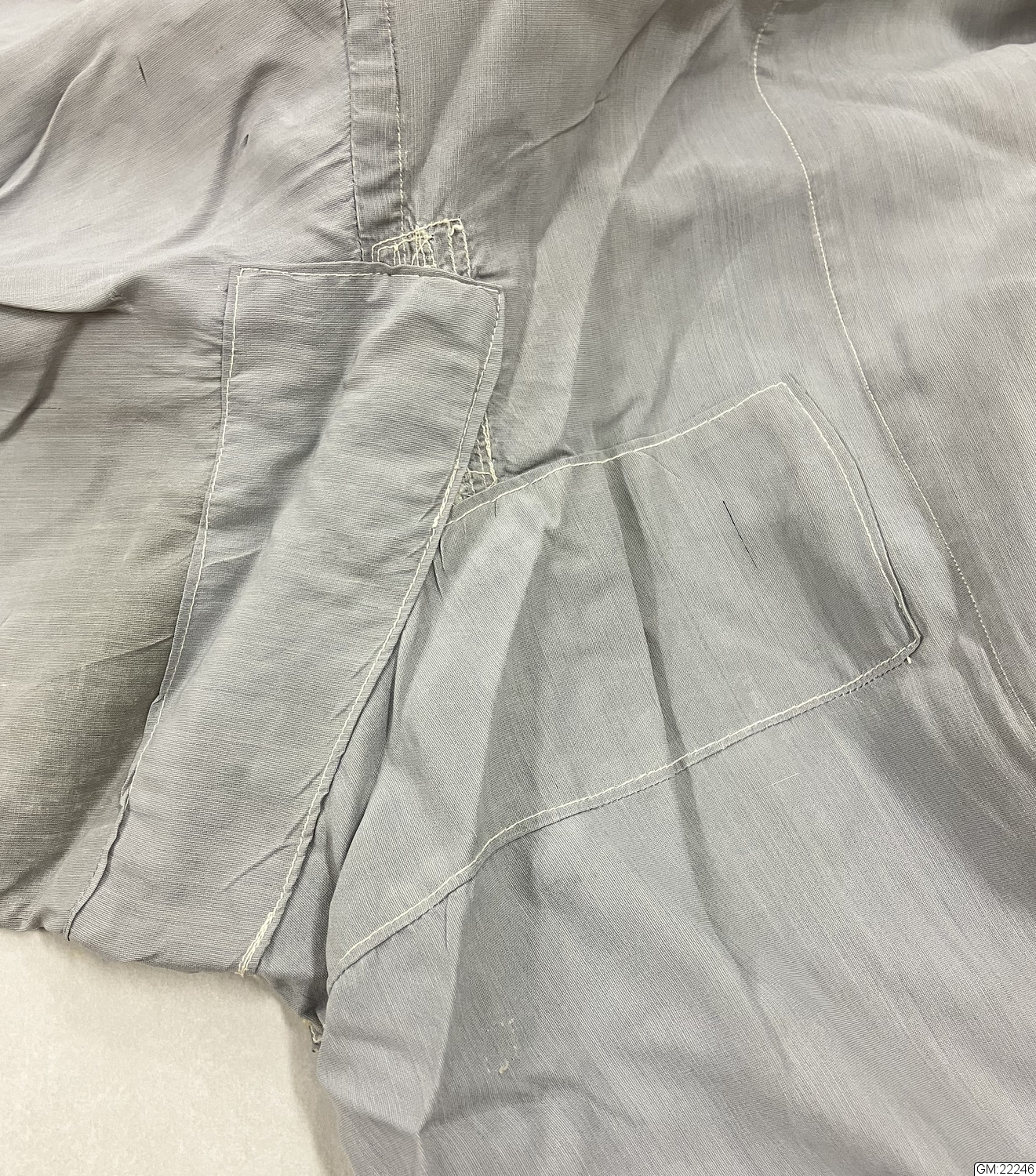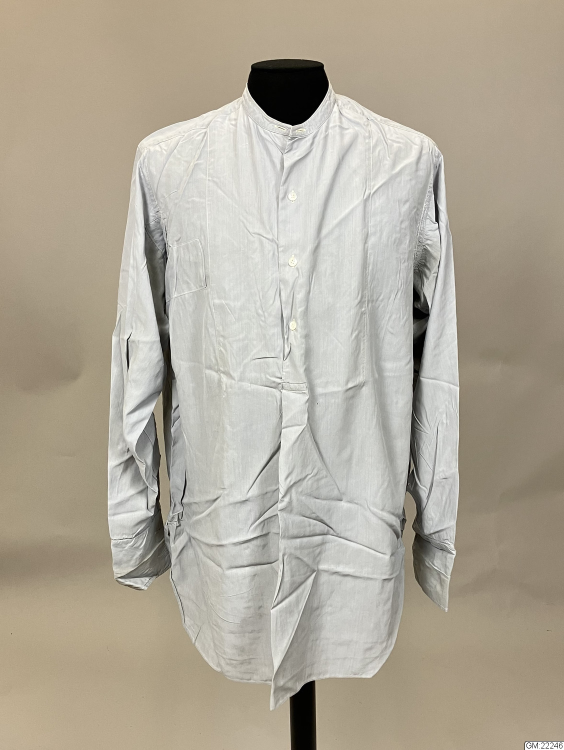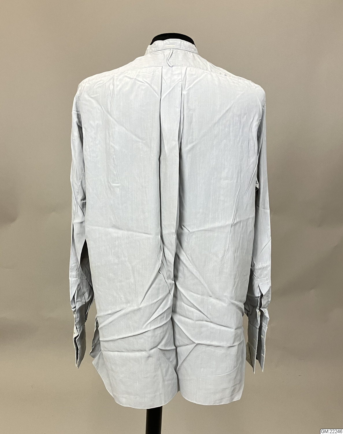Välanvänd herrskjorta med lagningar under båda ärmarna. Tillhörande löskrage.