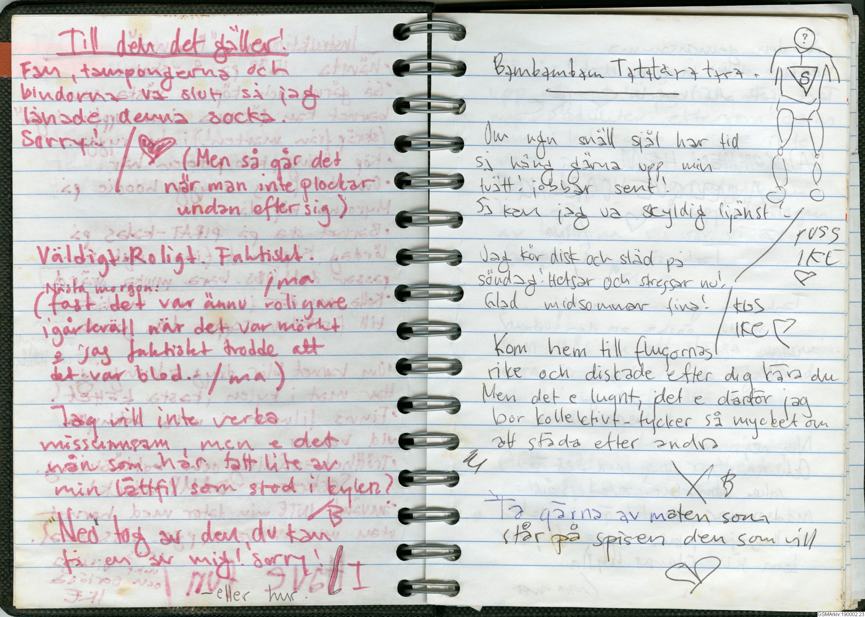 Allmänn loggbok/dagbok/dassbok som medlemmarna har skrivit i. Fullt med anteckningar, uppmaningar, ritningar m m.