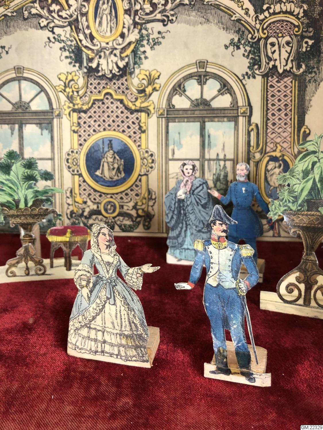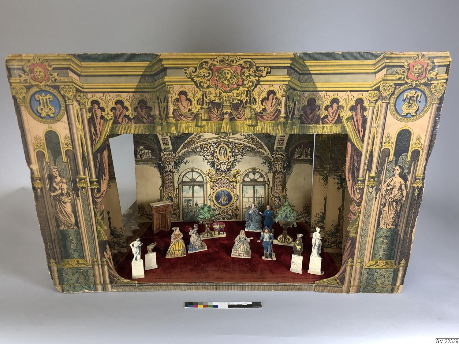 (MM:34230 jfr. bild s.83 i 'Alt-Wiener Spielzeugschachtel. Wiener Spielzeug aus drei Jahrhunderten 1961' an Hubert Kaut, engelsk-språkig utgåva efter M. Trentscusky, Mignon-teater, tryckt i Wien.)
