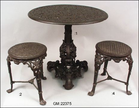 Järnbruk (327); Möbler och mattor: Bord (352.3); Möbler och mattor: Sittmöbler (352.1); Tomt och trädgård (351)