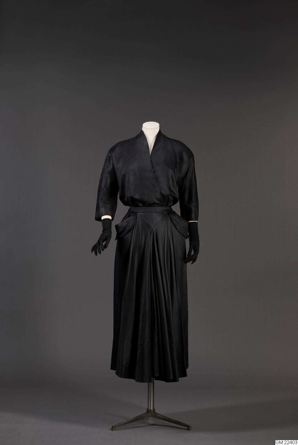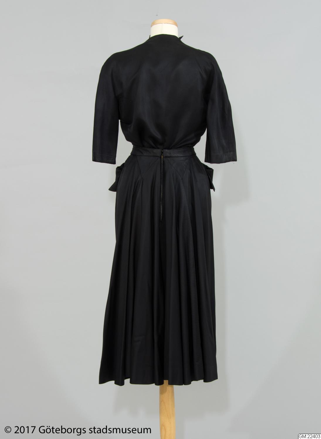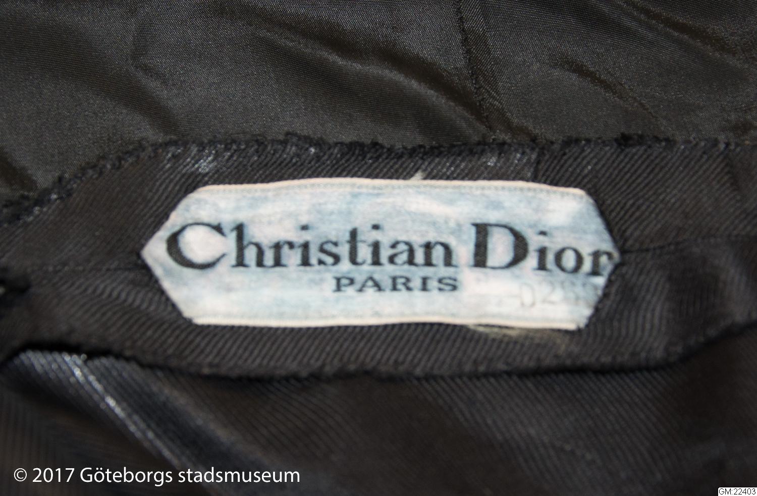 - Klassisk tredelad Dior-dräkt i svart med original etikett från Modehuset Christian Dior SA Haute Couture. Nätt liv, med knäppning fram, rundade axlar och avskuren krage, smal midja och vid kjol i två delar.