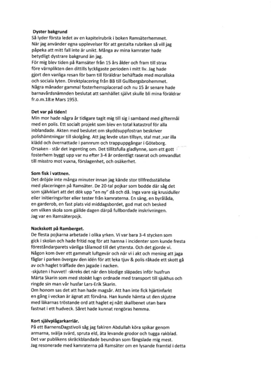 Berättelse om tiden på Ramsäterhemmet