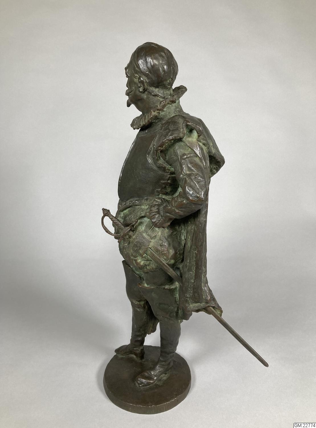 Denna statyett är gjuten efter en modell i plastelina som konstnären ställde ut på Valand när stadens främsta skulle välja hur det kommande monumentet av Karl IX skulle se ut. Två modeller ställdes ut, denna fotstaty samt en ryttarstaty. Modellen av fotstatyn gav konstnären till överste Albert Fredrik Jacobsson 1902, initiativtagare till monumentet, som senare efter många om och men fick gjuta den i brons.