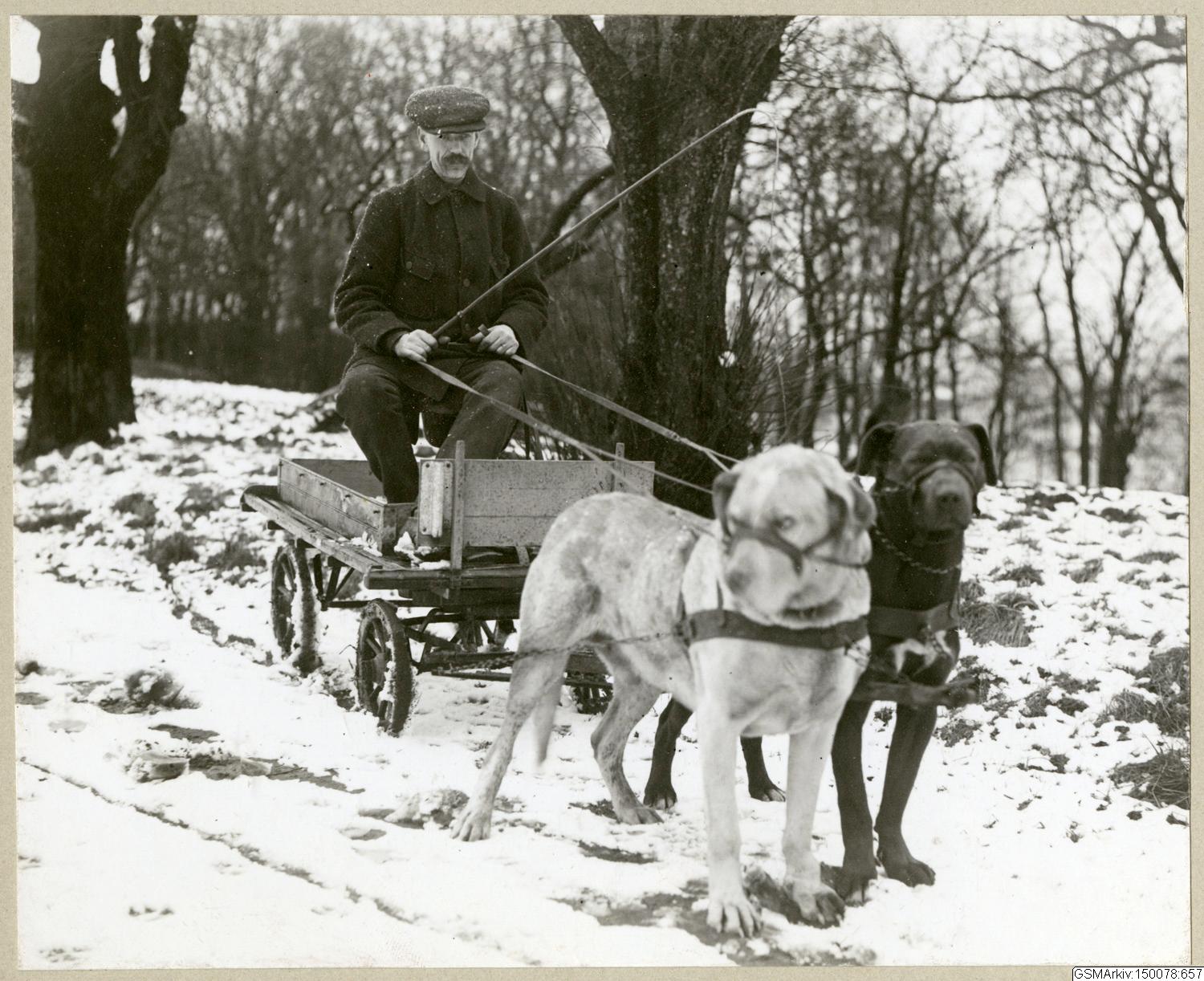 M. J. Mattson med sina hundar, mars 1914