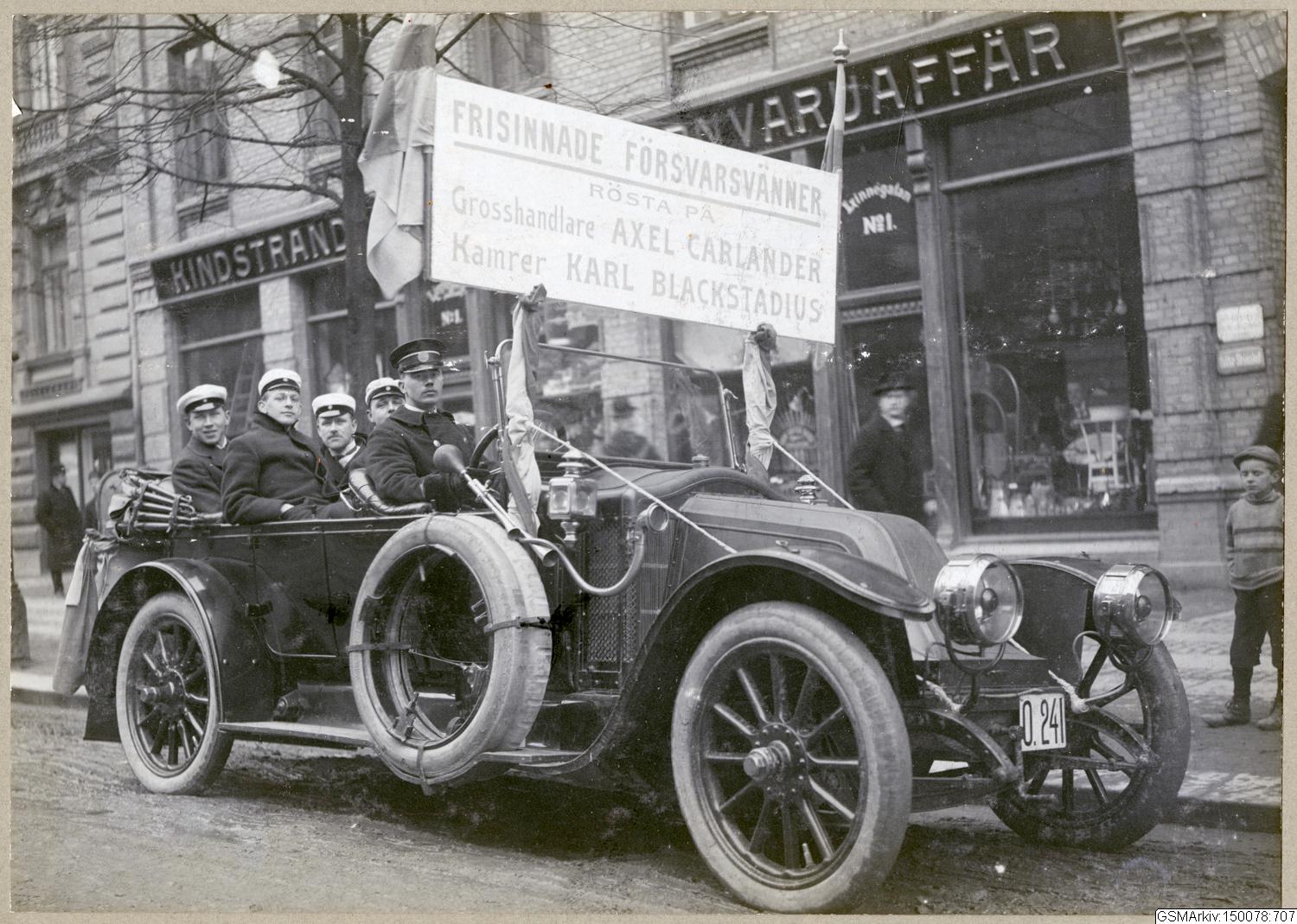 Demonstration i bil 3 April 1914 vid nyval till riksdagens andra kammare.