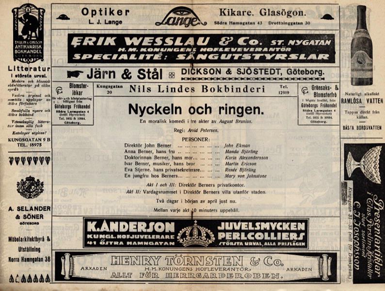 Nyckeln och ringen, 1920 :: föreställning