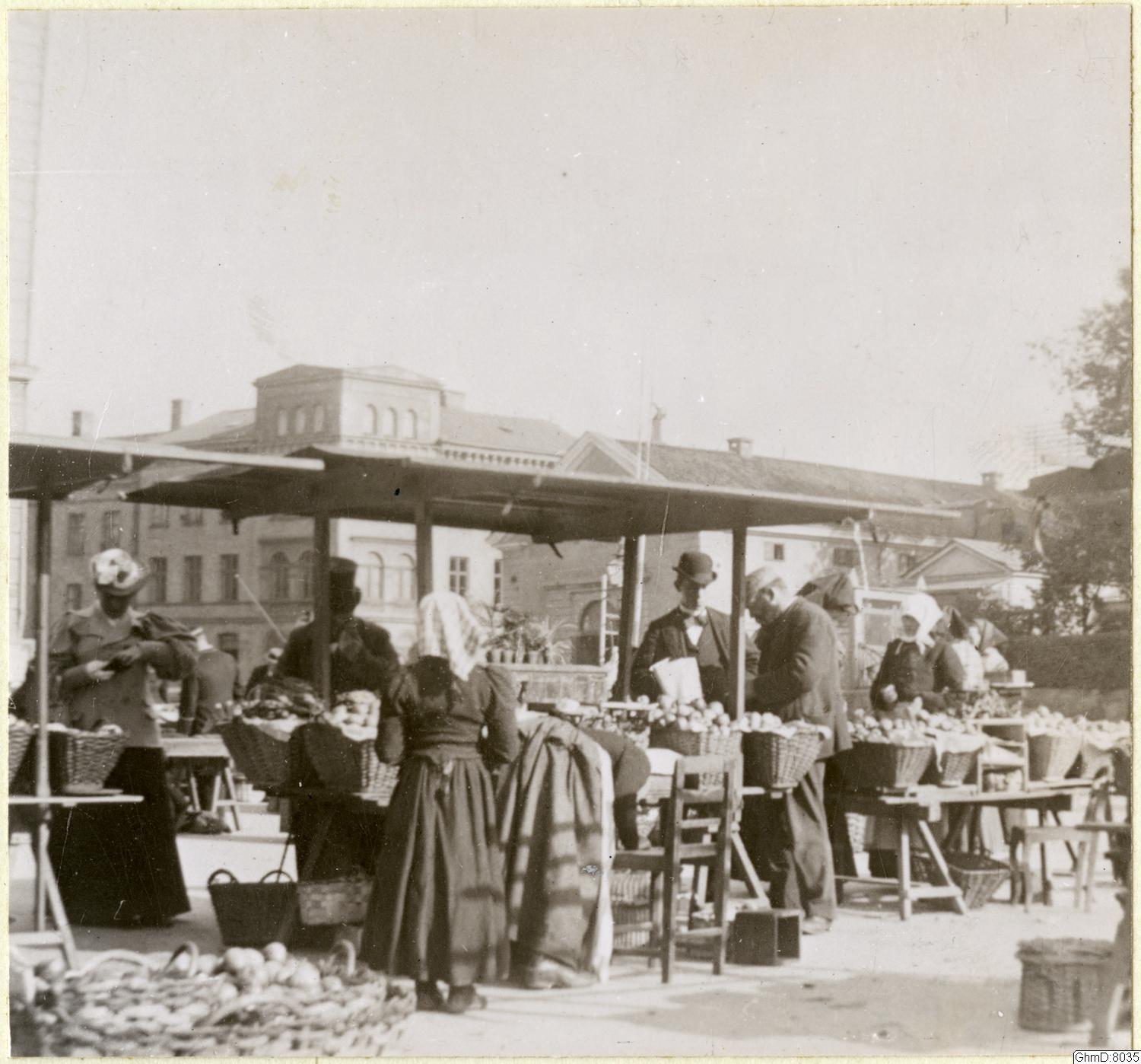Grönsakstorget en marknadsdag vid 1800-talets slut.