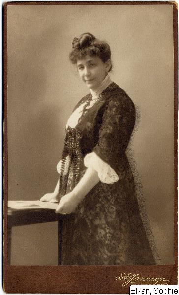 Sophies föräldrar bodde på Vallgatan 38 när hon föddes, men flyttade senare till Östra Hamngatan 35 där Sophie växte upp. Vid 17 års ålder träffade Sophie sin kusin, musikbokhandlaren Nathan Elkan (1834-1879) från Stockholm, på Nääs slott och de fattade tycke för varandra. De gifte sig pingstdagen den 19 maj 1872 på Nääs slott. Paret flyttade sedan till Hamngatan 8 (nuv 6) i Stockholm. Den 15 november 1877 föddes deras dotter Kerstin samtidigt som Nathan diagnostiserades med tuberkulos. Familjen besökte därefter kurorter och sanatorier i såväl Sverige som Europa, men utan framgång: den 26 december 1879 avlider Nathan Elkan i Nizza, Frankrike. Dagen efter dör även dottern Kerstin i tuberkulos, 2 år gammal. Sophies familj begravs på den Mosaiska begravningsplatsen i Göteborg den 23 januari 1880.