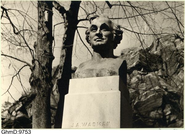 - Wadman föddes i Karlskrona 1777 och studerade i Lund och Åbo. Han deltog 1812-14 i fälttågen i Tyskland och Norge, efter vilka han bosatte sig i Göteborg. Wadman blev under åren i Göteborg (bland annat som medlem och populär talare i Göta Par Bricole) känd för sina litterära och sociala talanger. Produktionen, vilken stundtals var diger, bestod huvudsakligen av s.k. tillfällighetsdikter och beställningskväden. Wadmans liv präglades av fattigdom och armod. 1869 förärades han med "Wadmansbysten", vid invigningen belägen i Lorensbergsparken, men senare (1940-talet?) flyttad till Kronhusparken.