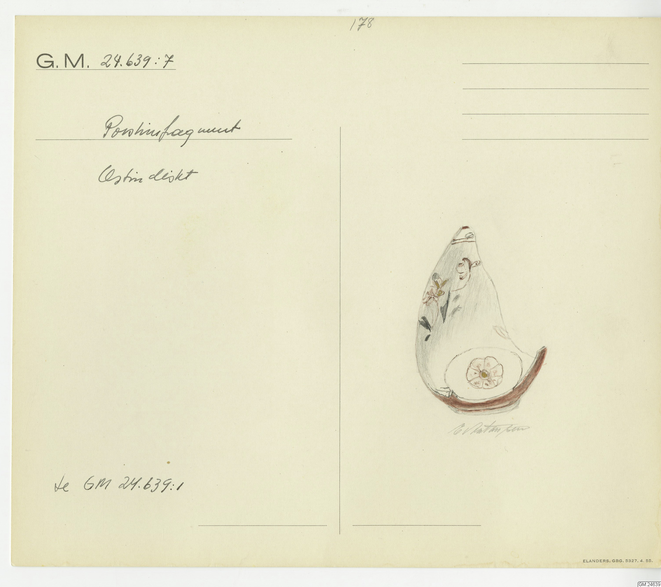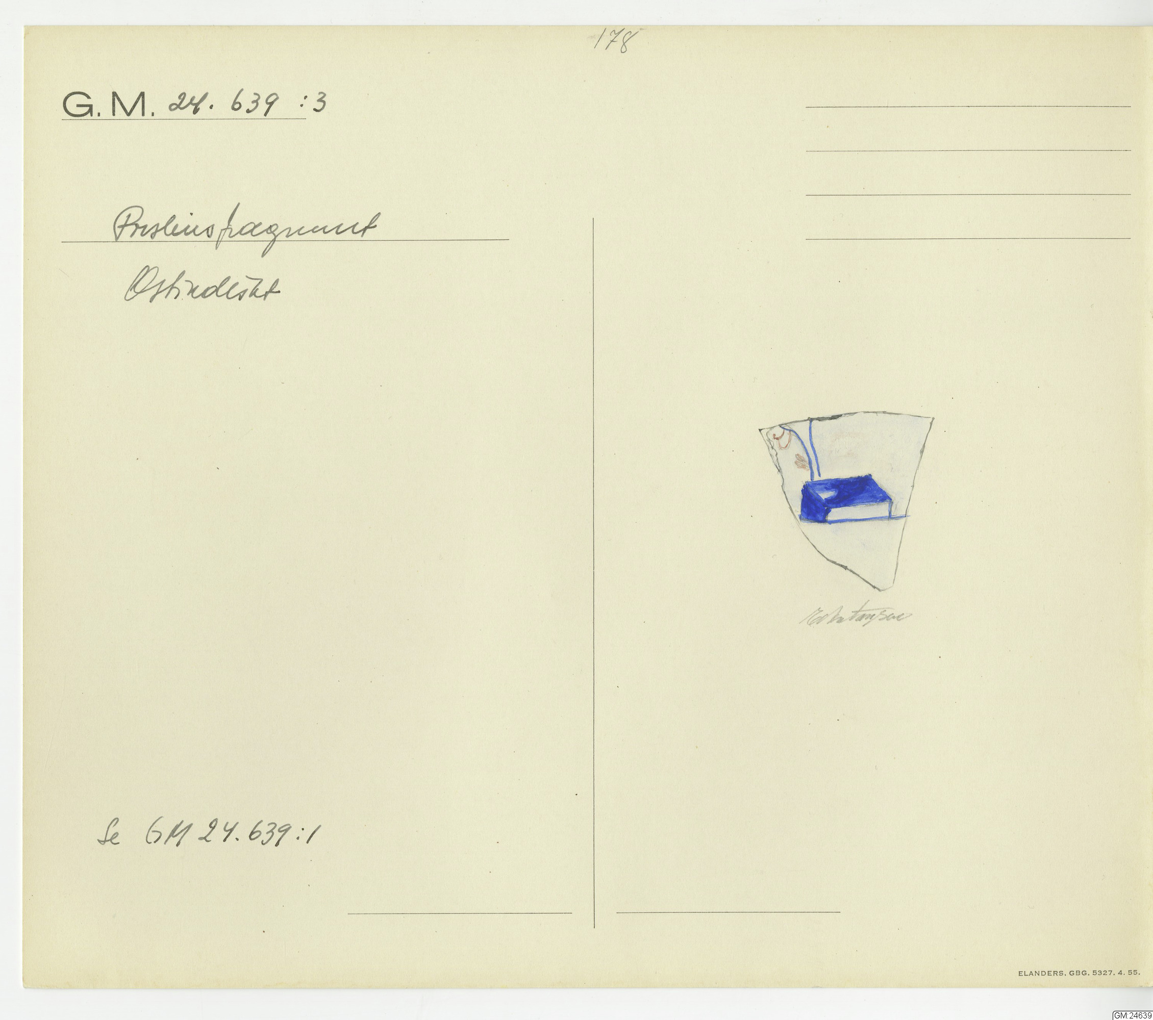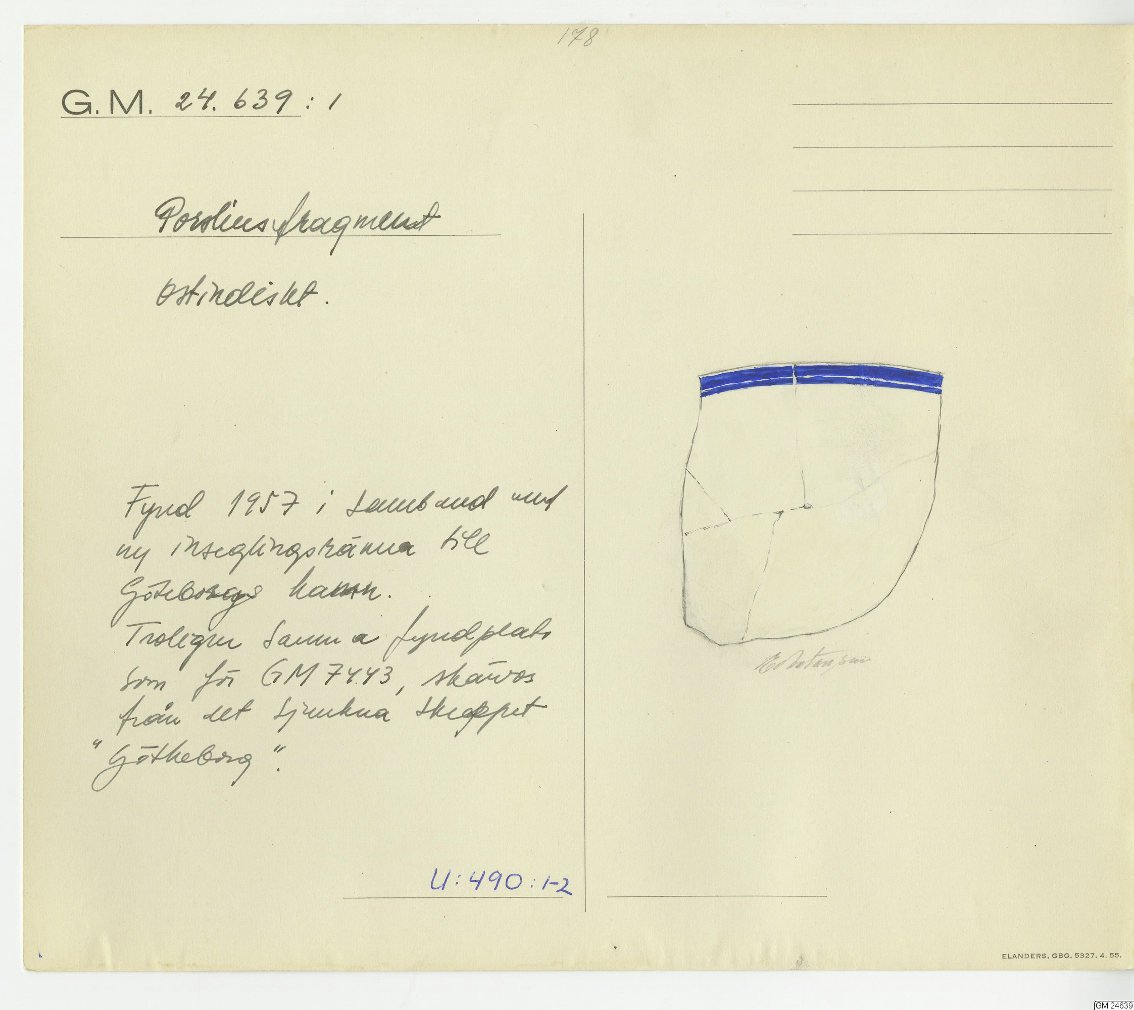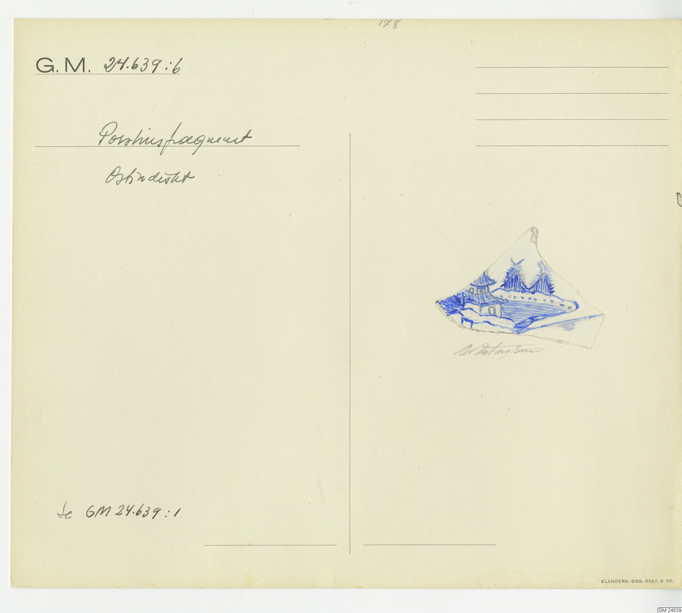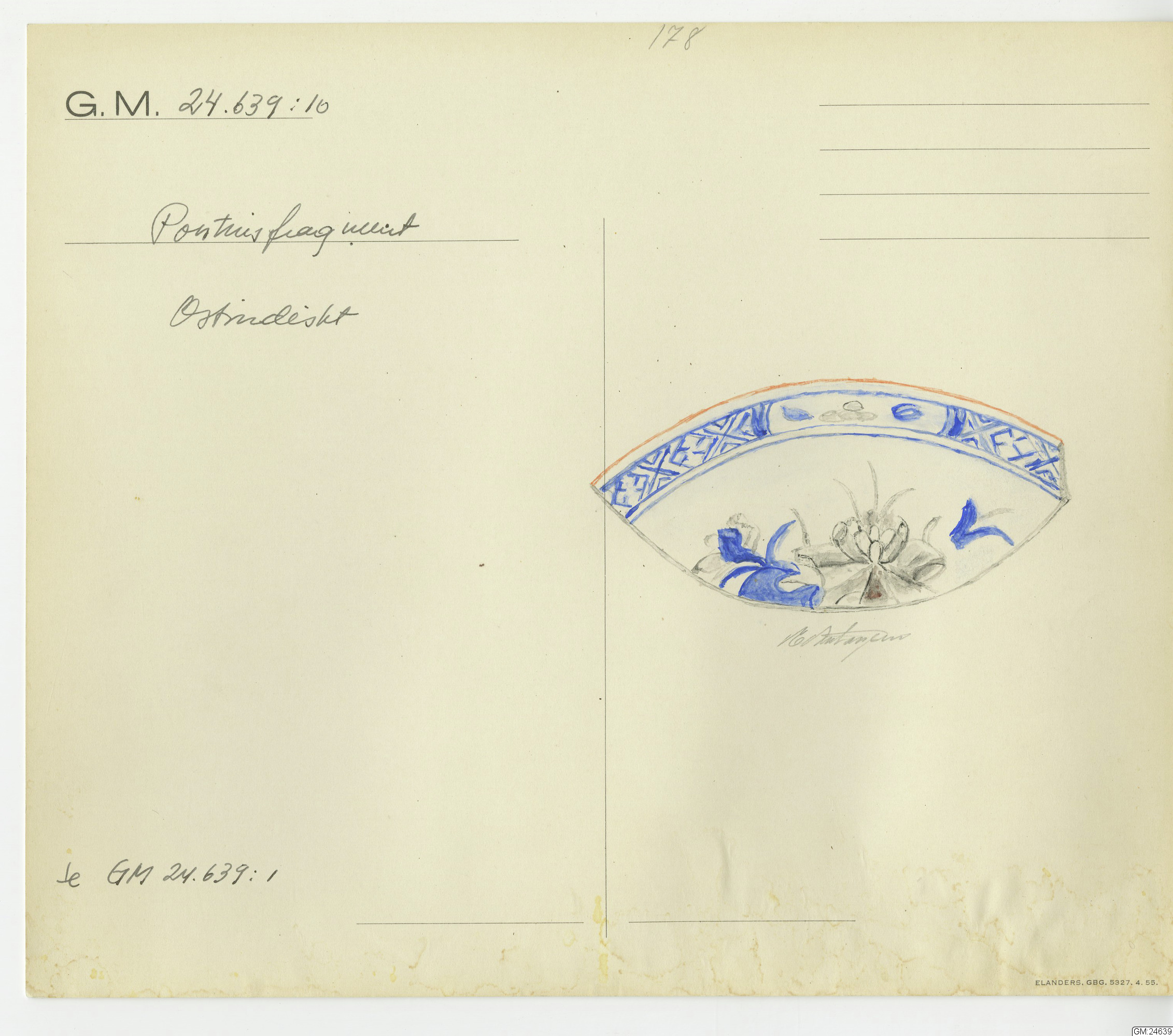 GM katalogkort 178. 18E Porslin Ostindiskt 8. Fynd från skeppet Götheborg mm