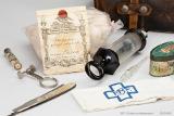 Instrument/utrustning använd av barnmorska. Förvarades i väska (se GM:24655).