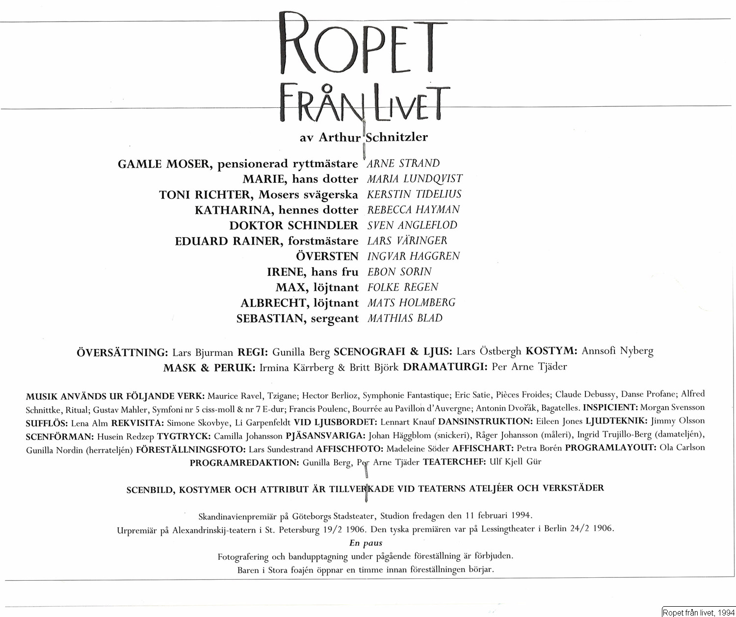 Spelversion Göteborgs stadsteater/Studion, skandinavisk prem. 1994-02-11