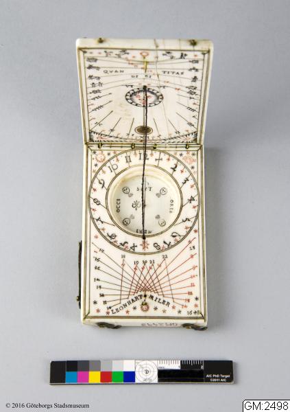 Kombinerat solur och kompass av elfenben från 1600-talet. (GM:2498) [Göteborgs födelse, 2017]