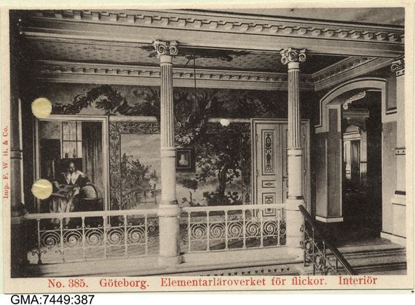 - skolans trapphus innehåller Carl Larssons kända triptyk "Den svenska kvinnan genom seklen". En av lärarna på skolan, Ellen Keys syster Hedda K., bad Pontus Fürstenberg bekosta en tavla i skolan. Denne skall ha svarat "Ge henne en liten målning över första dörren, mer är detta fasliga hus inte värt!". Detta blev början till Larssons 10 målningar i vestibulen och längs trappuppgången.