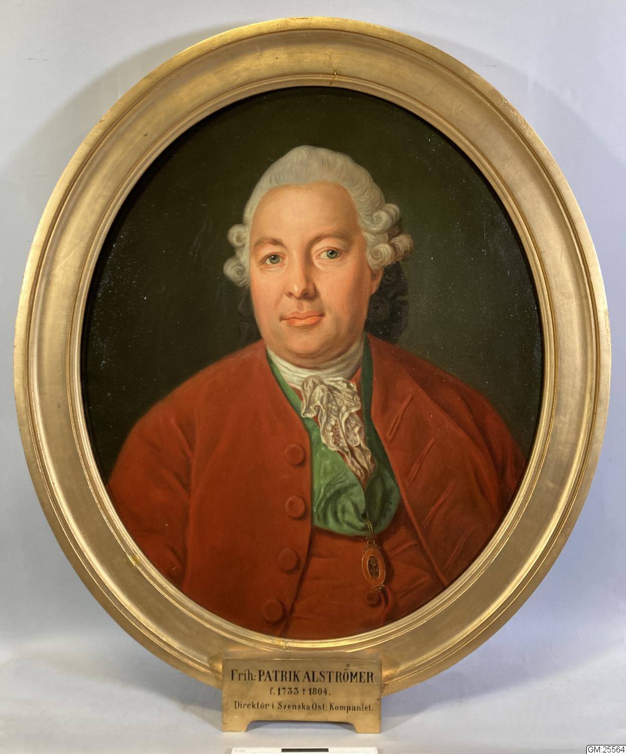 Kopia. Föreställer kommersierådet friherre Patrik Alströmer f. 1733 d. 1804. Tidigare utan nummer i samlingarna. Konserverad 1968 med pengar från fond.