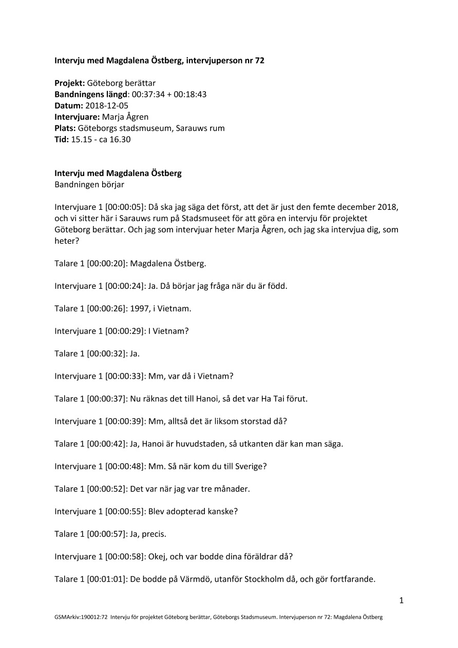 Efter att intervjun avslutats sätts bandspelaren på igen och Magdalena fortsätter intervjun med en berättelse kring behov av hjälp. Hon har mått dåligt i omgångar och gått på BUP Stockholm. Nu får hon inte gå där längre eftersom hon har fyllt 18 år. I Göteborg har hon sökt hjälp genom vårdcentralen och det fungerar inte, har inte lyckats få remiss till sjukhus. Svårt att få kontakt med psykiatrin, känner sig i limbo. Pratar med en kurator på skolan och känner sig lite stöttad där.