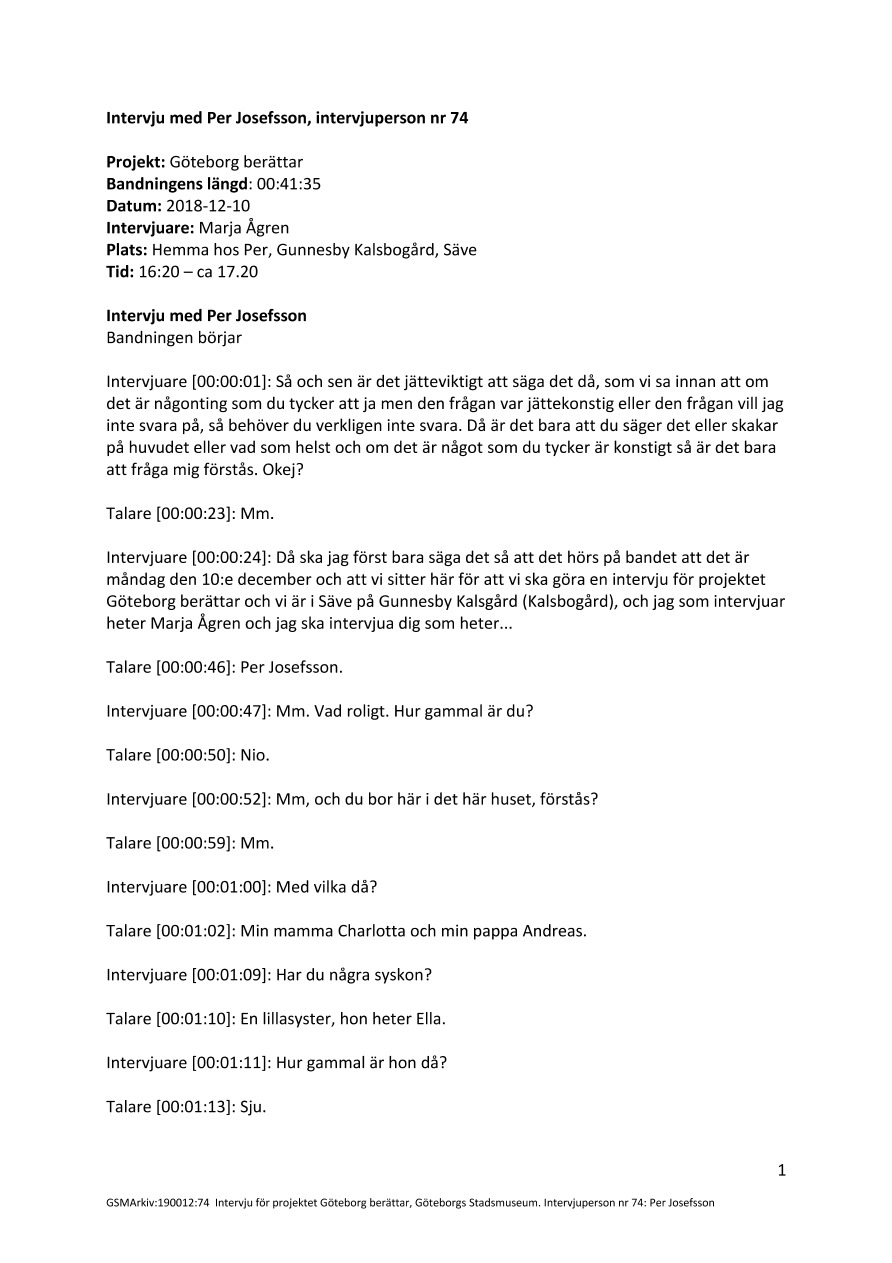 Bra med att bo Göteborg – nära till allt, inte jättemycket trafik, en bra kommun. Känner sig stolt över att bo här.