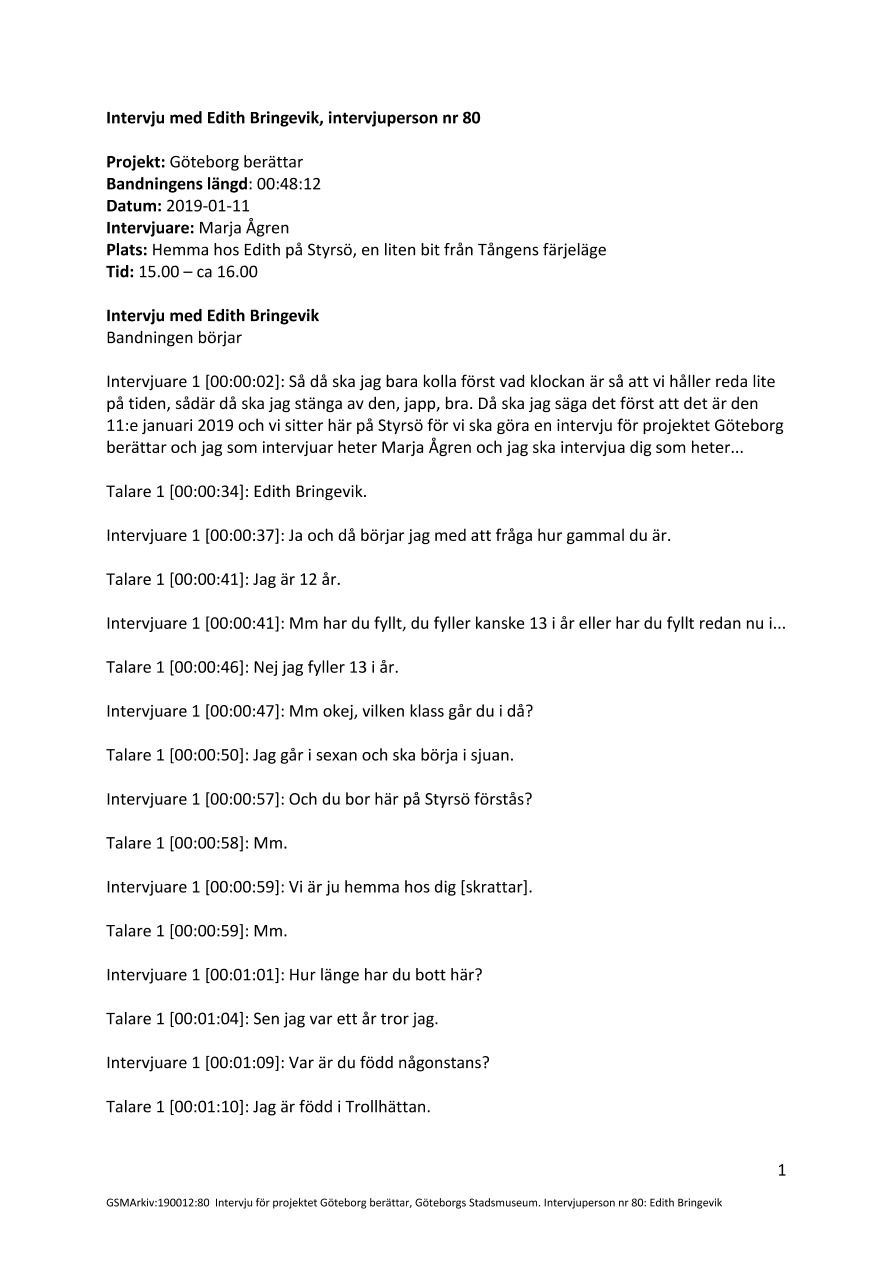 Edith har varit runt överallt på Styrsö och hon går också i skolan där – nu i sjätte klass. Hon åker inte till de andra öarna så ofta men vill gärna åka in till Göteborg – stan – på helgerna. Det händer lite mer där. Men hon ser sig själv mer som Styrsöbo än som göteborgare.