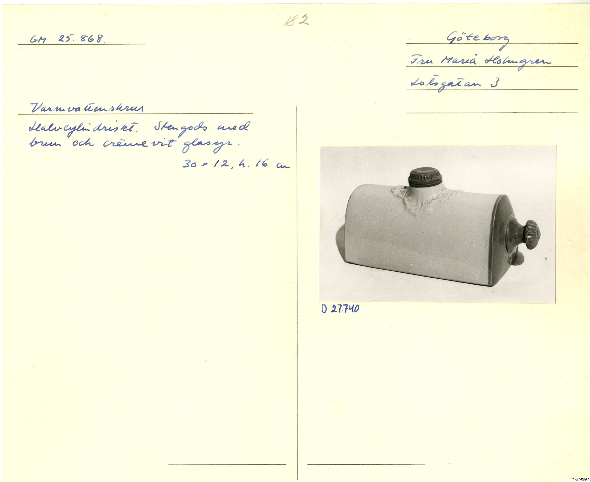 GM katalogkort 182. 18. Stengods. Div andra keramiska fabriker