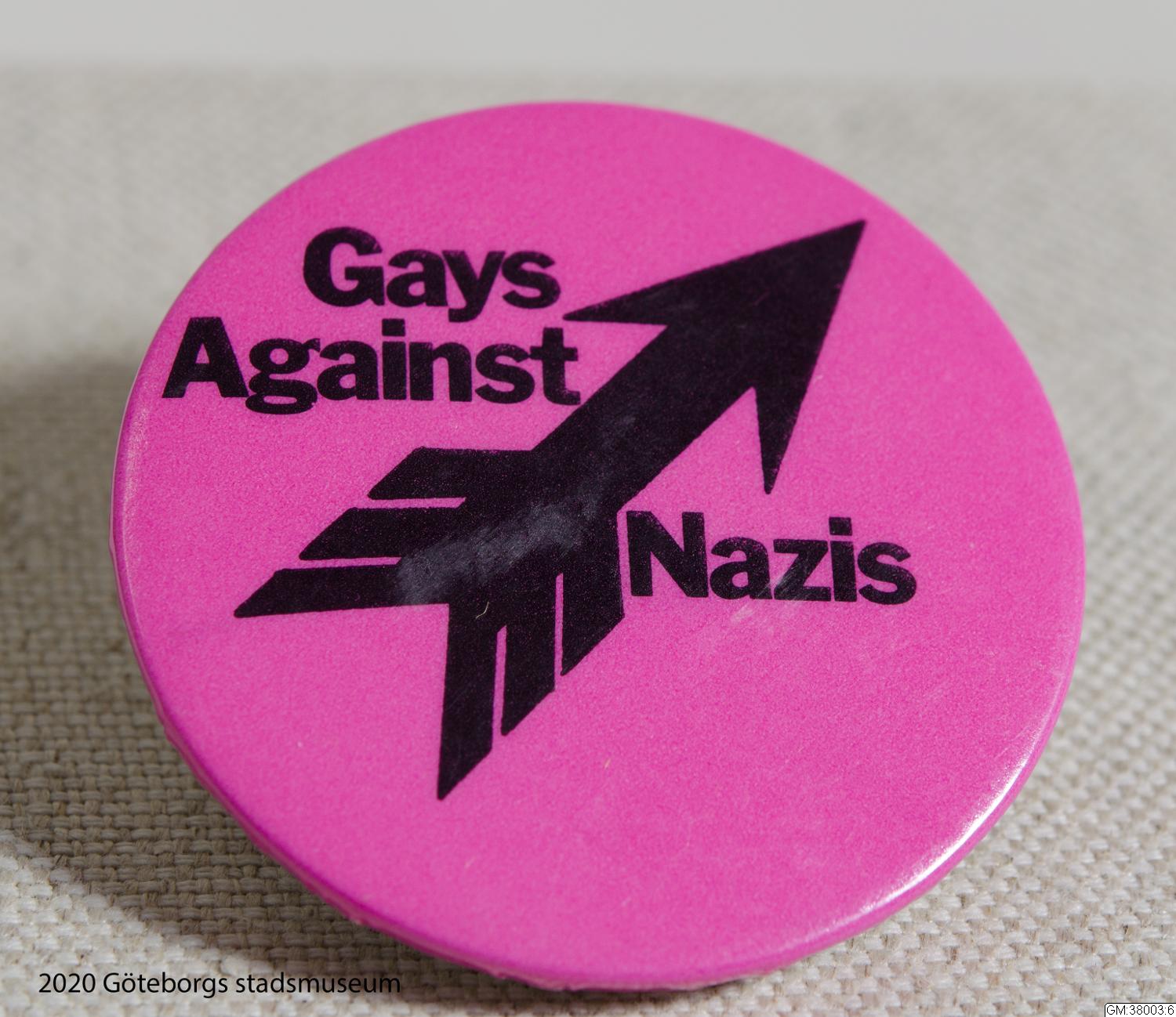 Pin med texten "Gays Against Nazis"