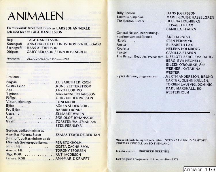 Program från uruppsättningen av Animalen på Stora Teatern
