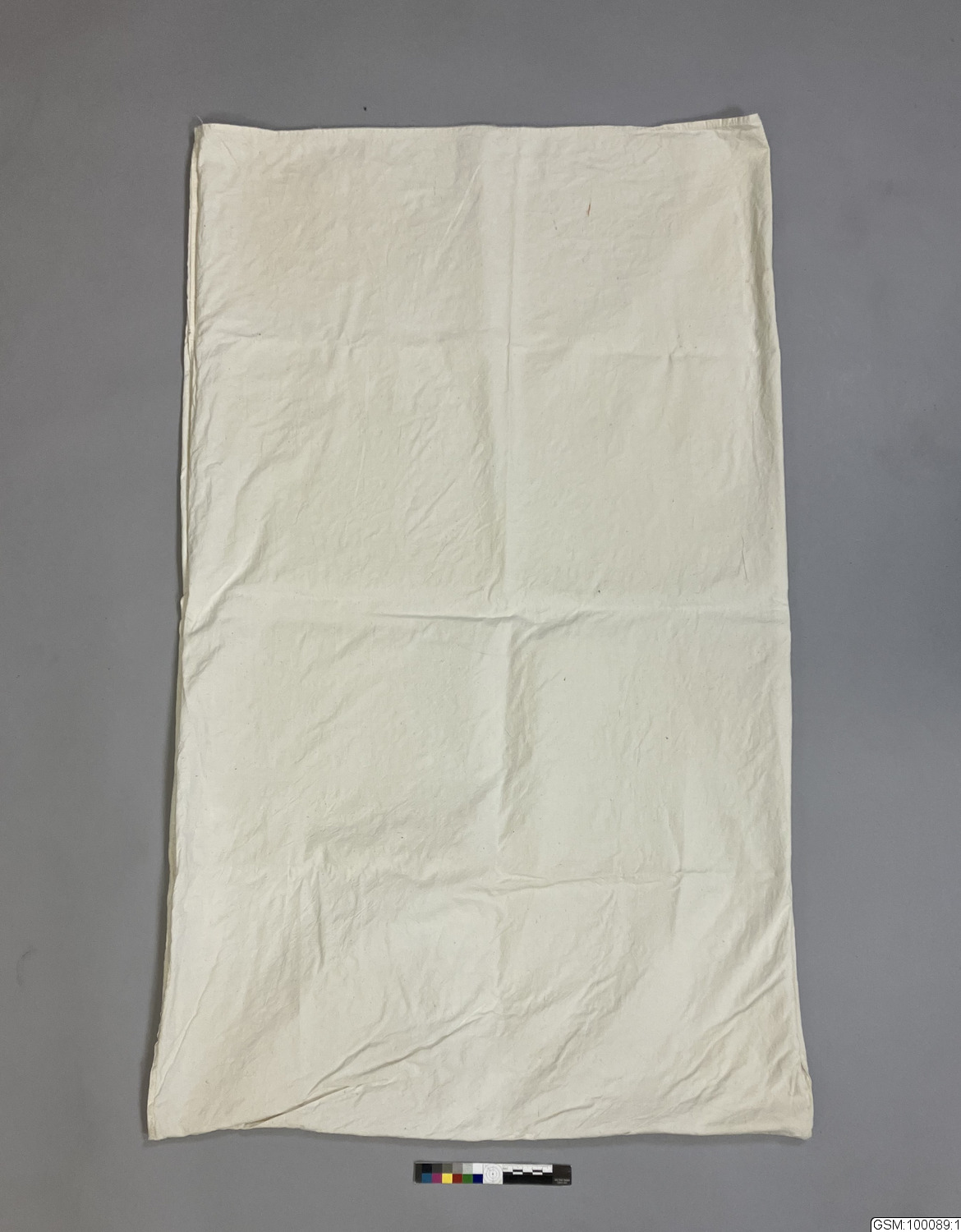 Påslakan i kraftigt oblekt bommullstyg. Påslakanet är sytt dubbelt med ena kortsidan öppet.