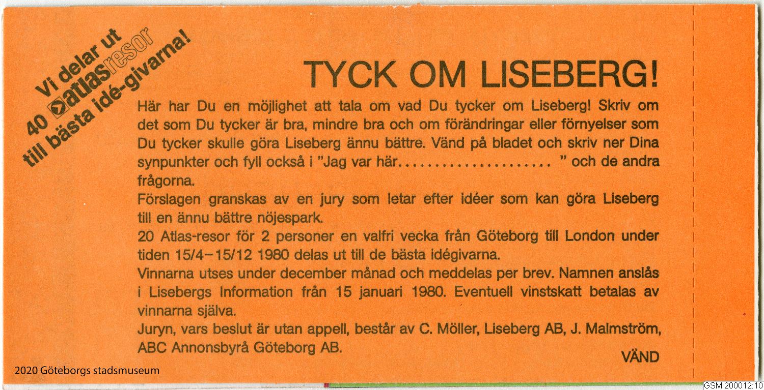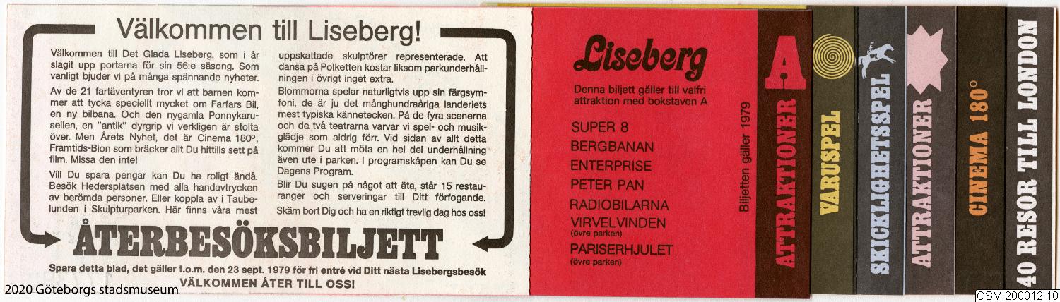 Stora Lisebergshäftet från 1979 för tonåringar 13-19 år. 22 kr.