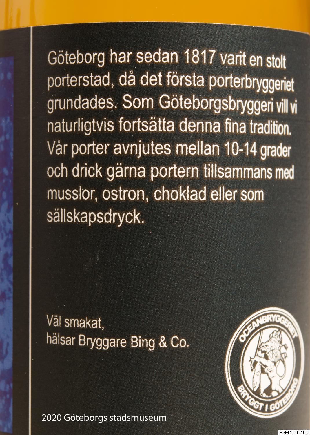Ölflaska från hantverksbryggeriet Oceanbryggeriet i Storgöteborg. Det etablerades 2007.