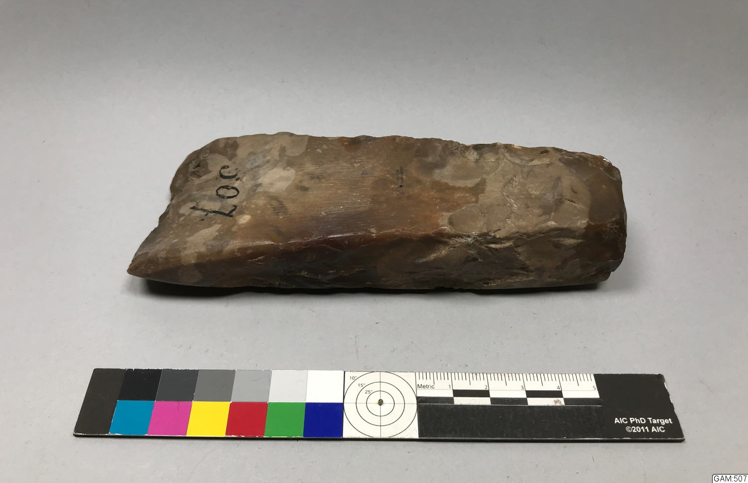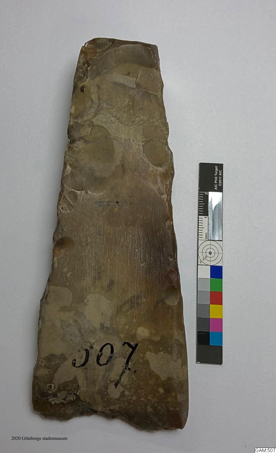 - "Hålmäjsel af flinta, i Borreby sn, Christianstad, Skåne. Gåva från Direktör Söderling"