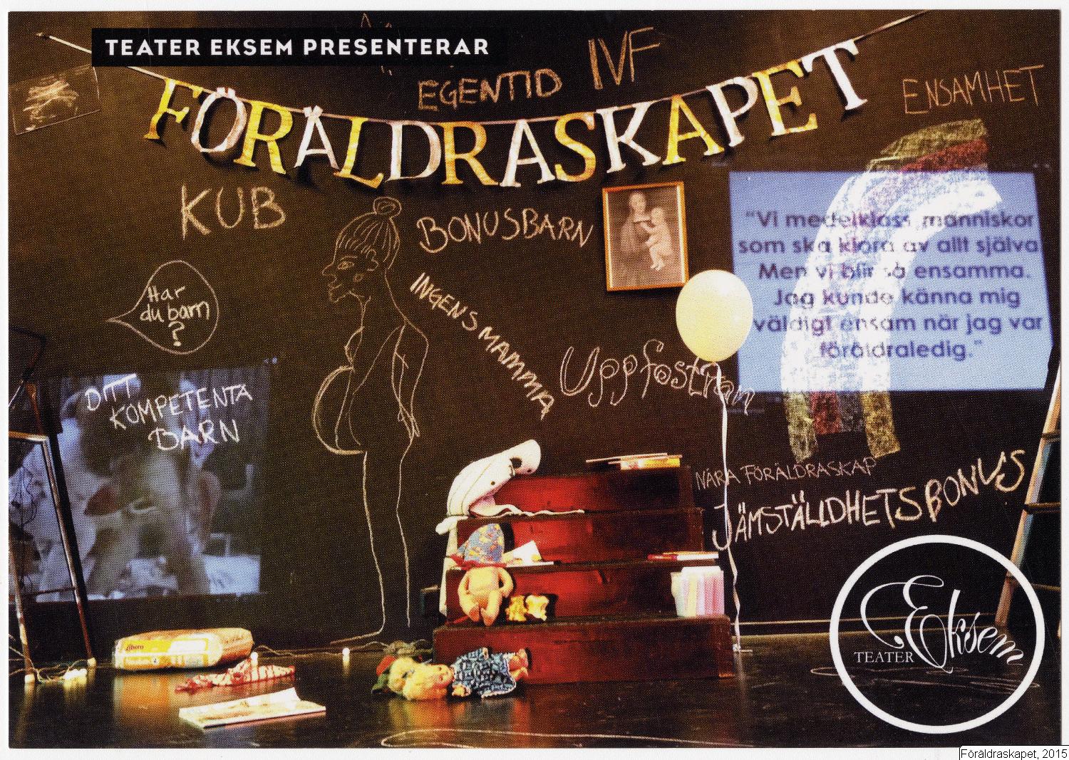 " Ett scenkonstverk om det moderna föräldraskapet. En föreställning om hur och varför vi blir, eller inte blir, föräldrar. Om barnlösa och barnfria. Om längtan, uppfostran, rädslor och makt. Om tabun, normer, perfekta familjer, förväntningar och livslånga relationer. Realism och fantasi, blodigt allvar och poesi."