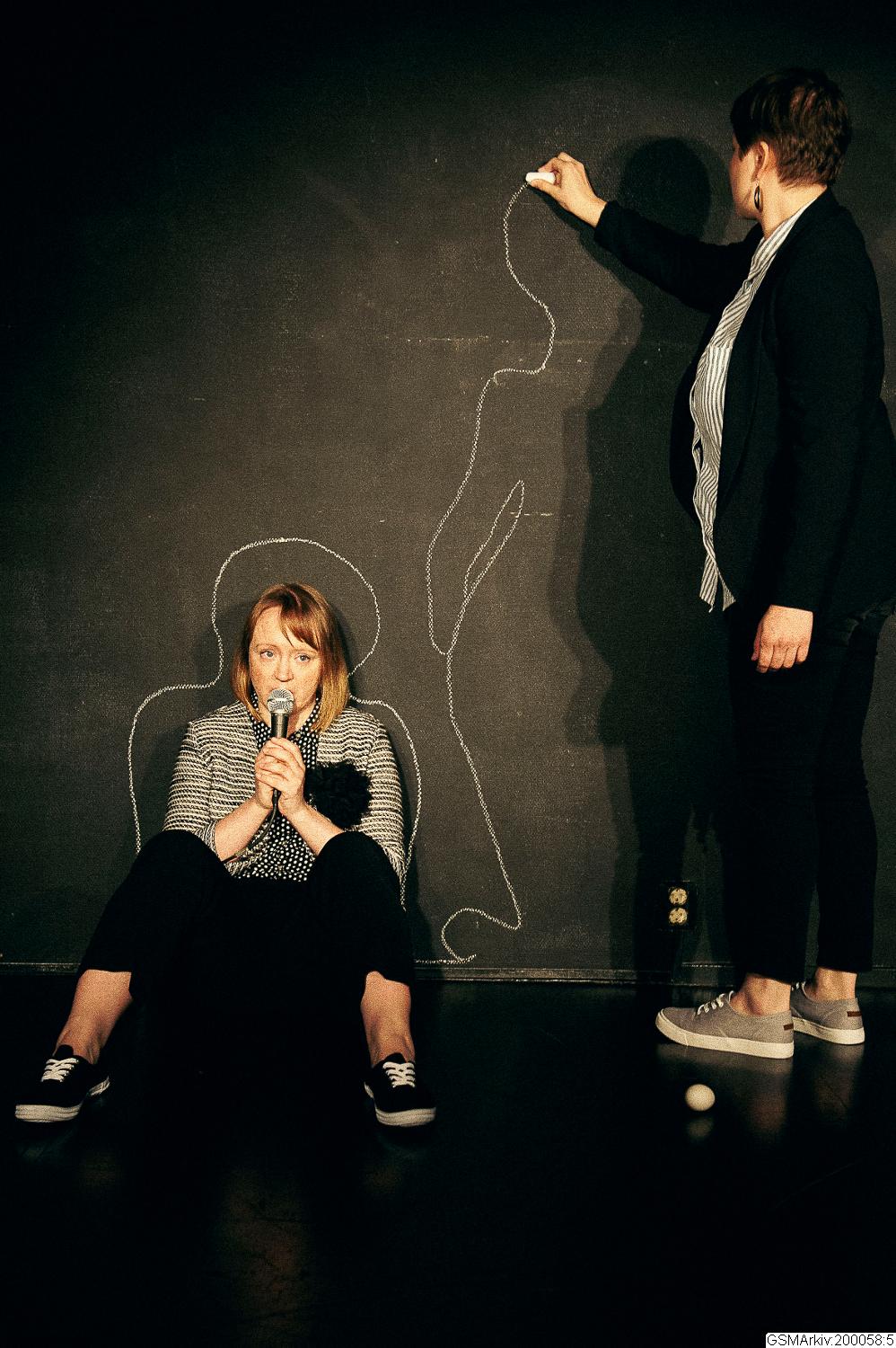 Fotografi från föreställningen Föräldraskap, 2015, spelad på Amanda Teater presenterad av Teater Eksem.