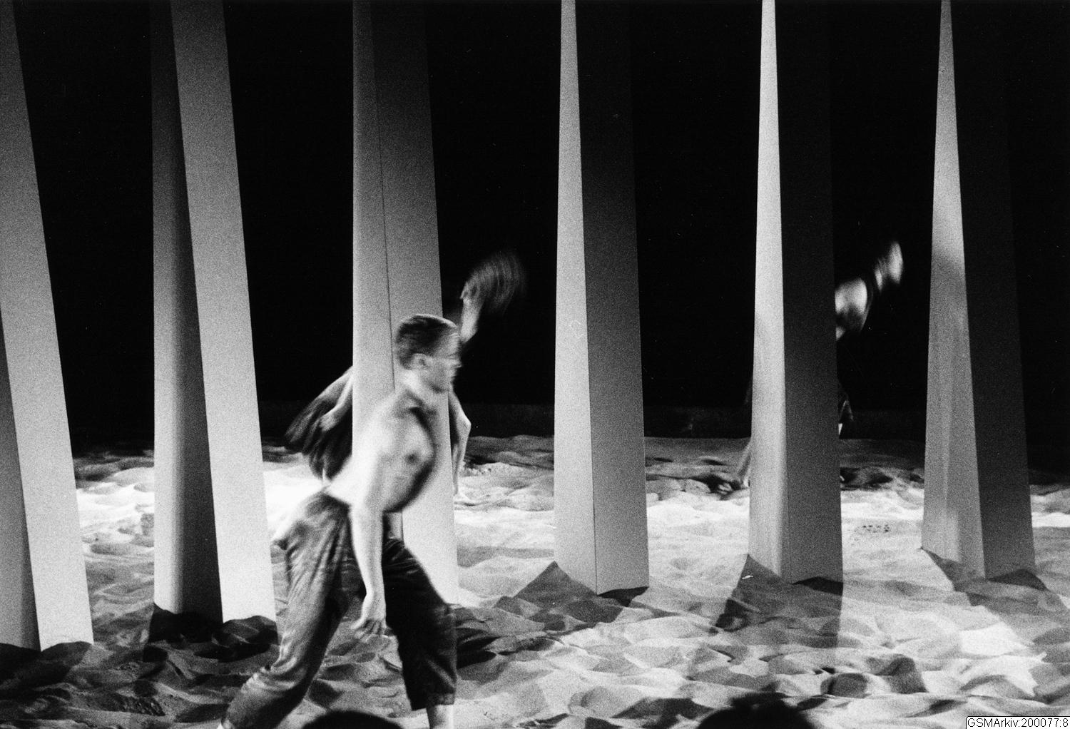 Fotografi från dansföreställningen Allting rasar inför en naken skuldra, 1978, uppförd på Unga Atalantes scen av dansgruppen Rubicon.