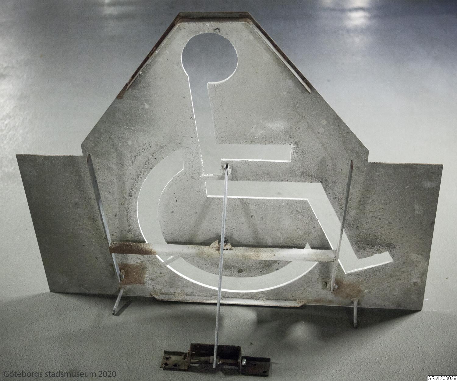 This stencil was used one night in 2015 to repaint 95 parking bays to be disabled parking. Throughout the 20th century, disability associations worked to adapt society for their members. This protest action in 2015 was done to show there’s still a lot to achieve! [The Thing about Gothenburg, 2021]