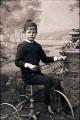 Studioporträtt av Bror Werner på sin trehjuling.