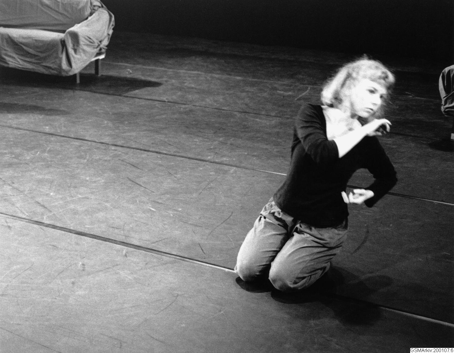- Fotografi från dansverket Lycke Liten, 1991. Verket ingick i helaftonsföreställningen "Två Vägar" tillsammans med Rävarnas bröllopsdans och spelades på Unga Atalantes scen.