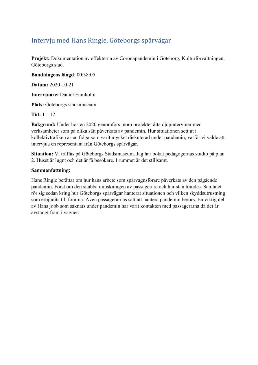 Intervju med Hans Ringle, Göteborgs spårvägar