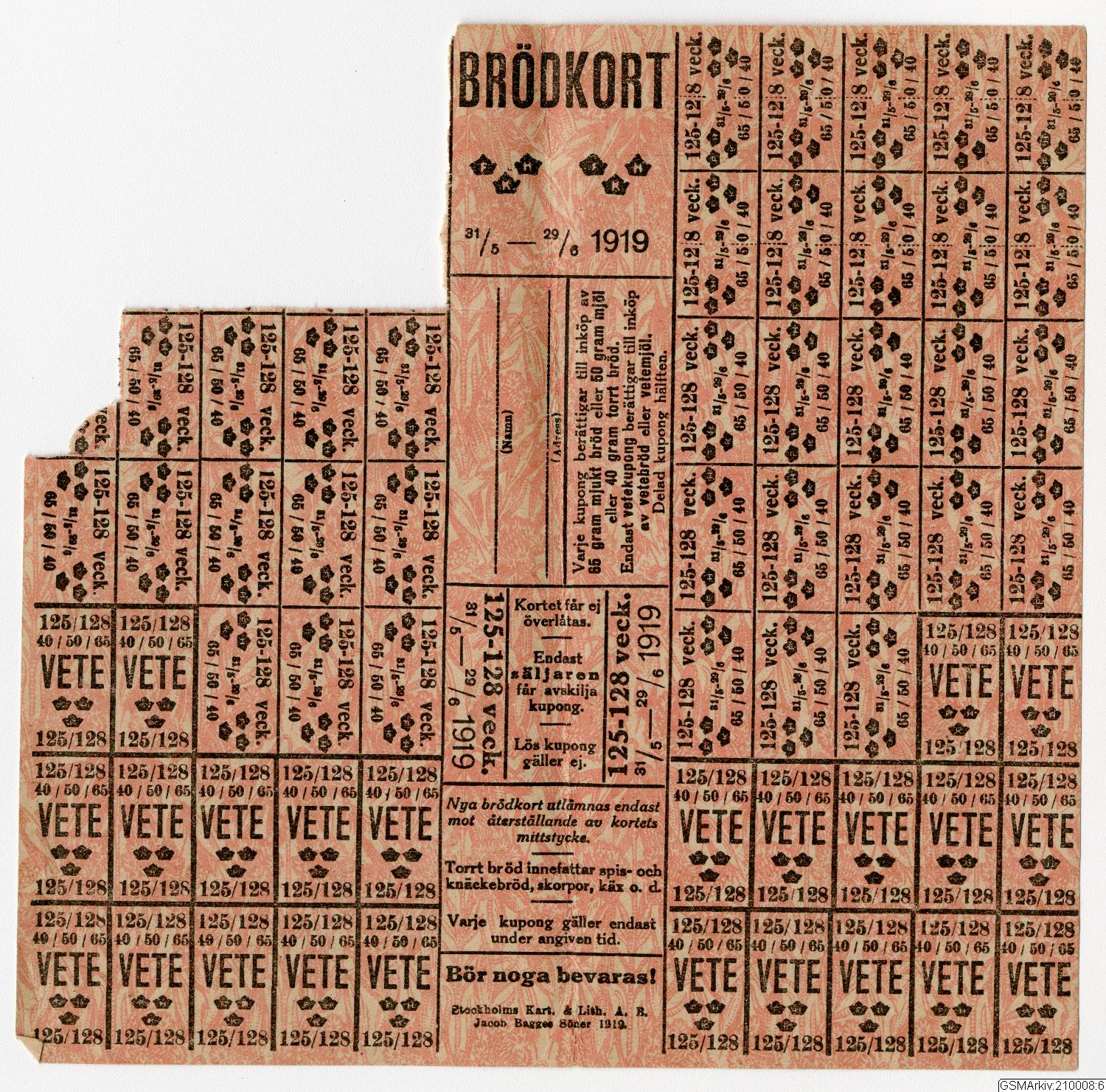 Ransoneringskort för bröd efter första världskriget, 1919.
