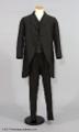 Kostym bestående av bonjour, väst och byxor av grårandigt ylletyg.