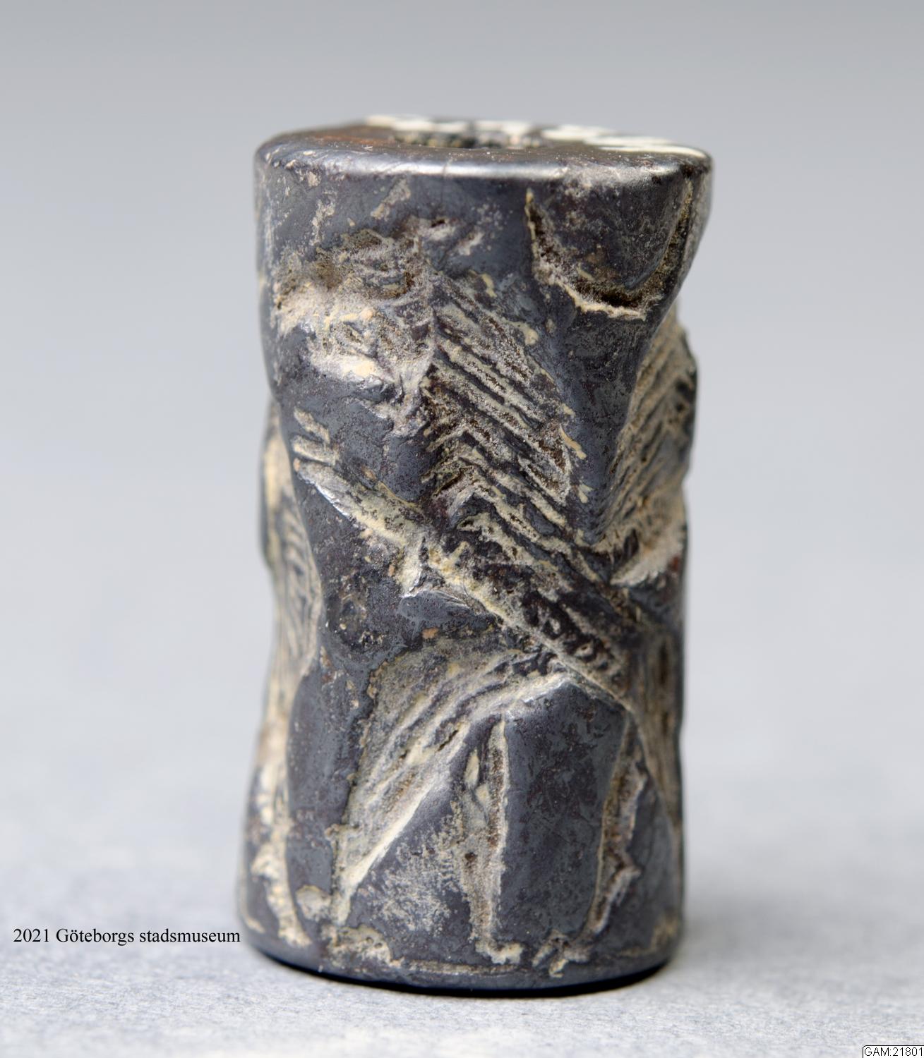 - "Sigillcylinder av järn (?) med isnidade människofigurer jämte inskrift"