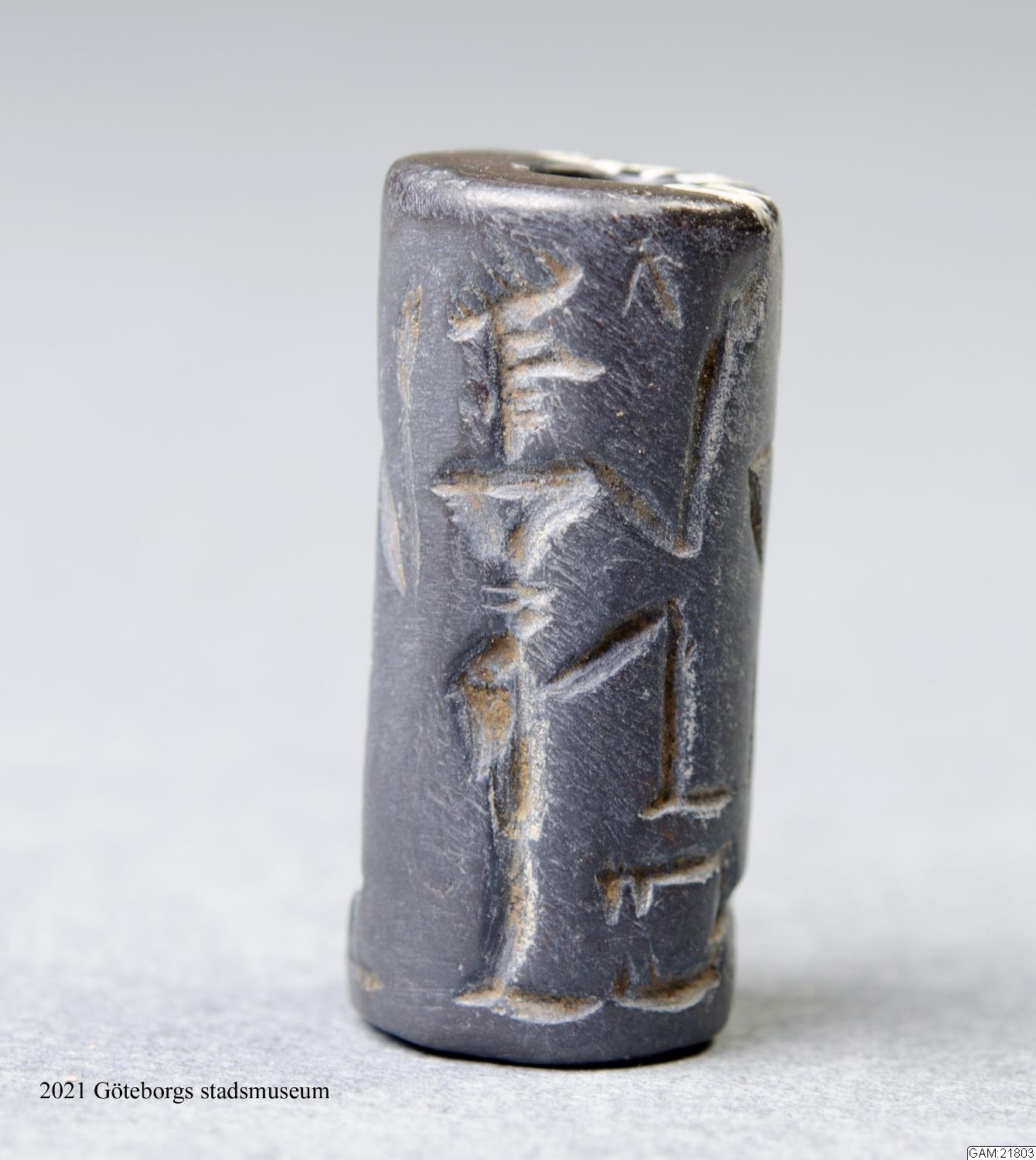 - "Sigillcylinder av järn (?) med isnidade människofigurer"