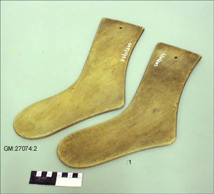 Strumptorkare av trä. Gåva från Valborg Nilsson 1969.