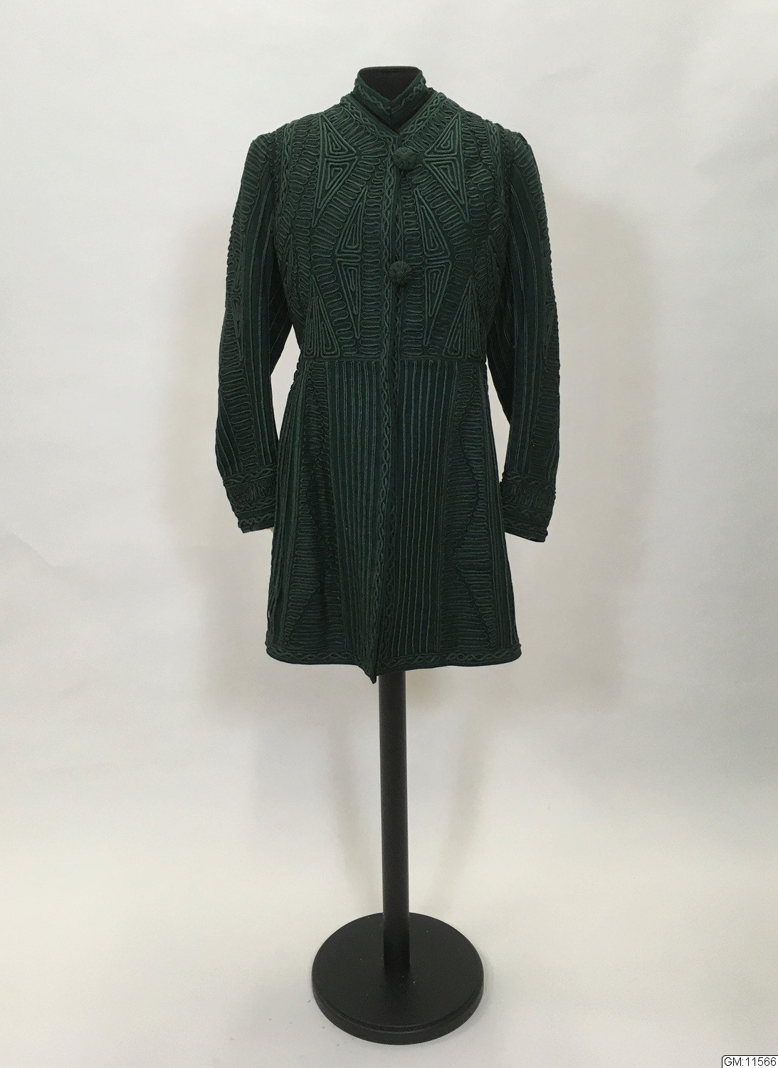 Grön yllekappa med snörmakerier med lös krage/isättning.