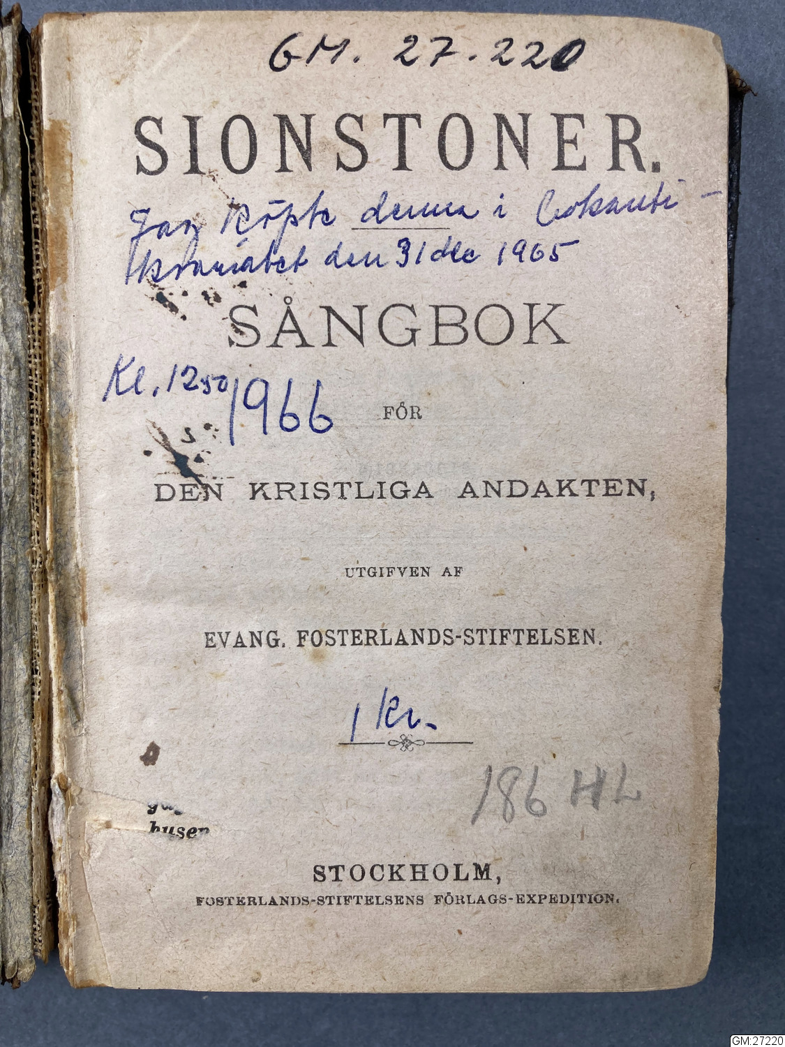 GM:27220 :: sångbok, SIONS TONER, böcker