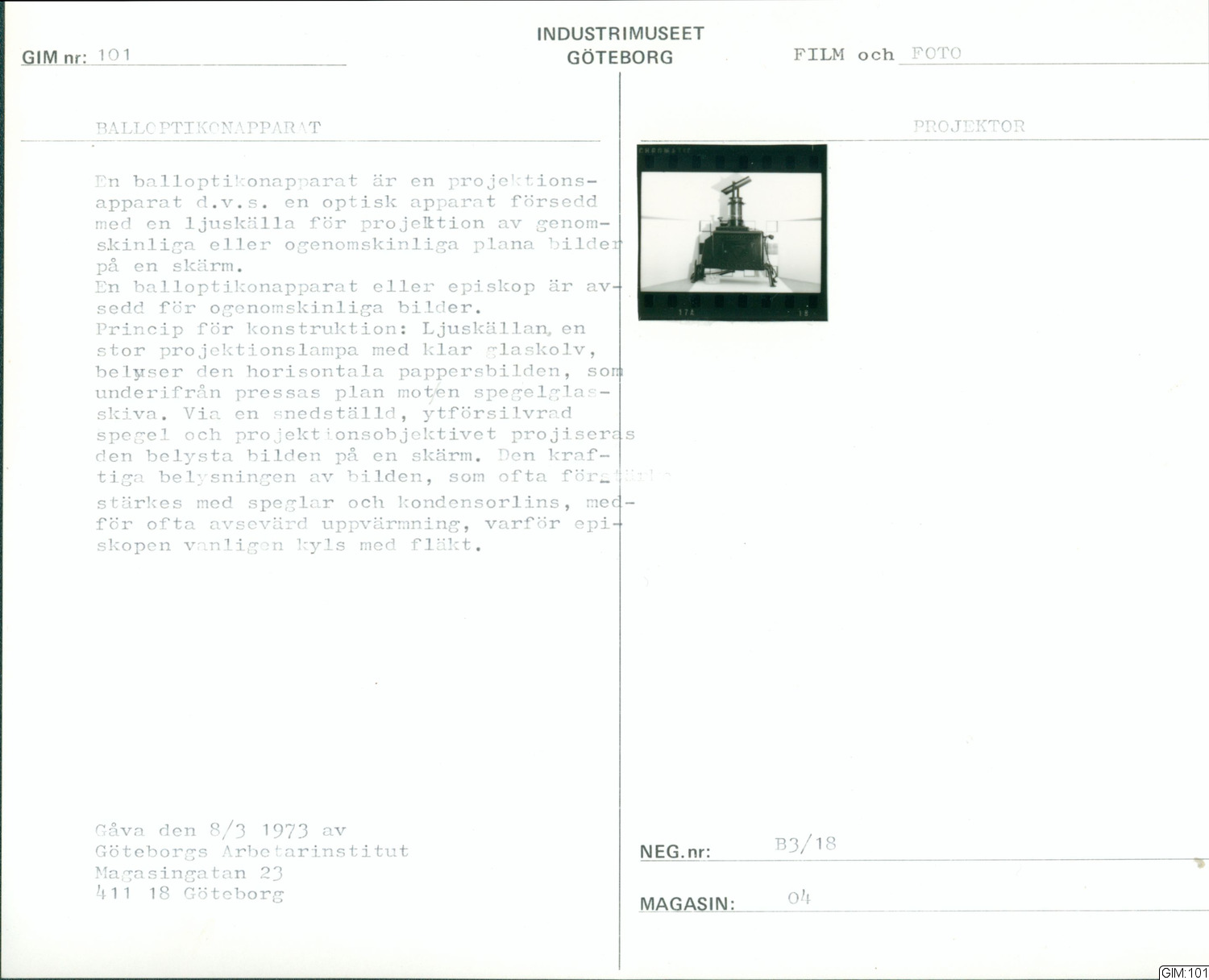 GIM:101 :: balloptikonapparat, film, foto