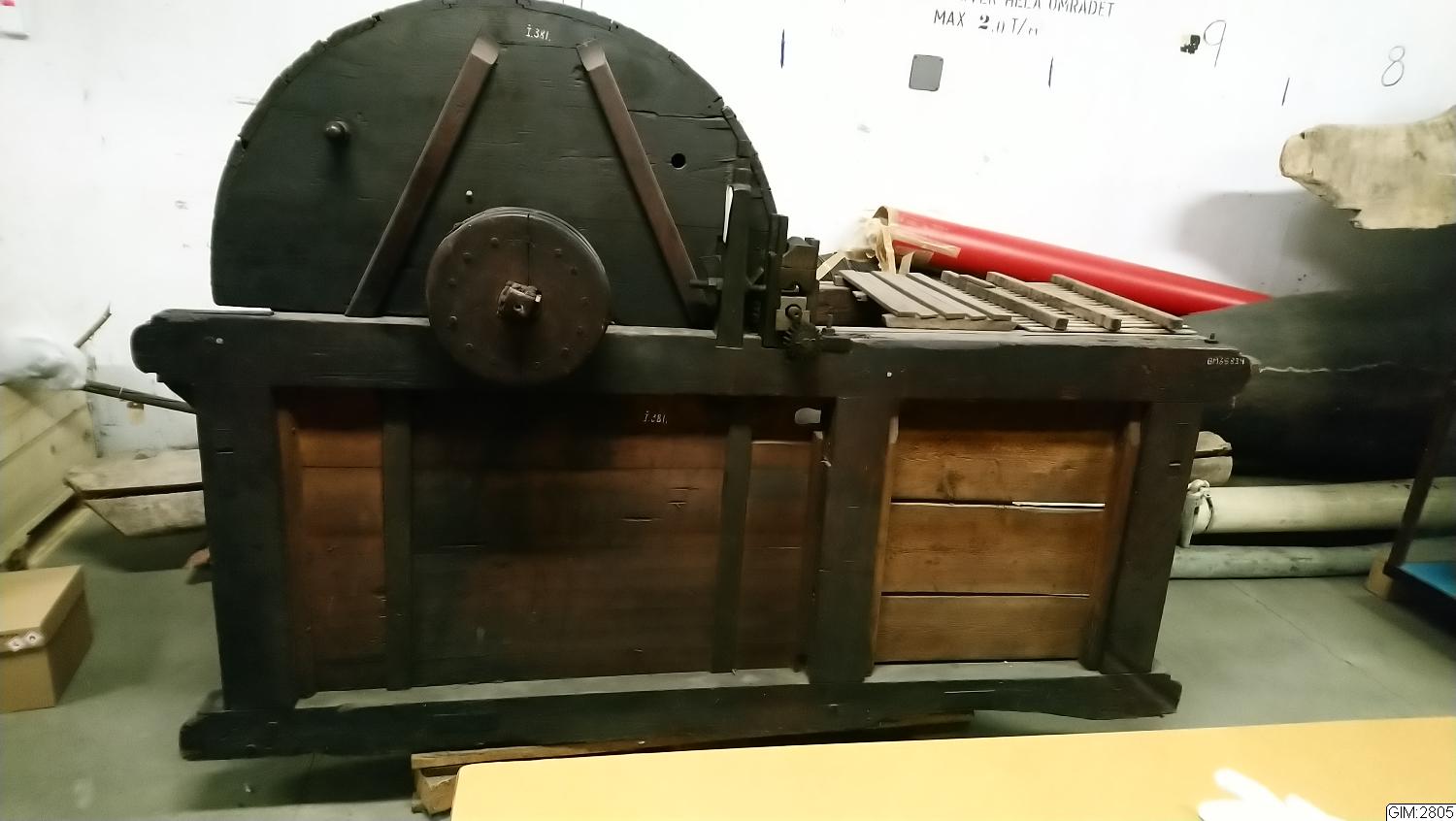Har tidigare stått på Borås Museum; Utställd på utställning i Örebro 1860-talet. Använd i Kyrkobokvarn Skövde Kåkinds hd Vg