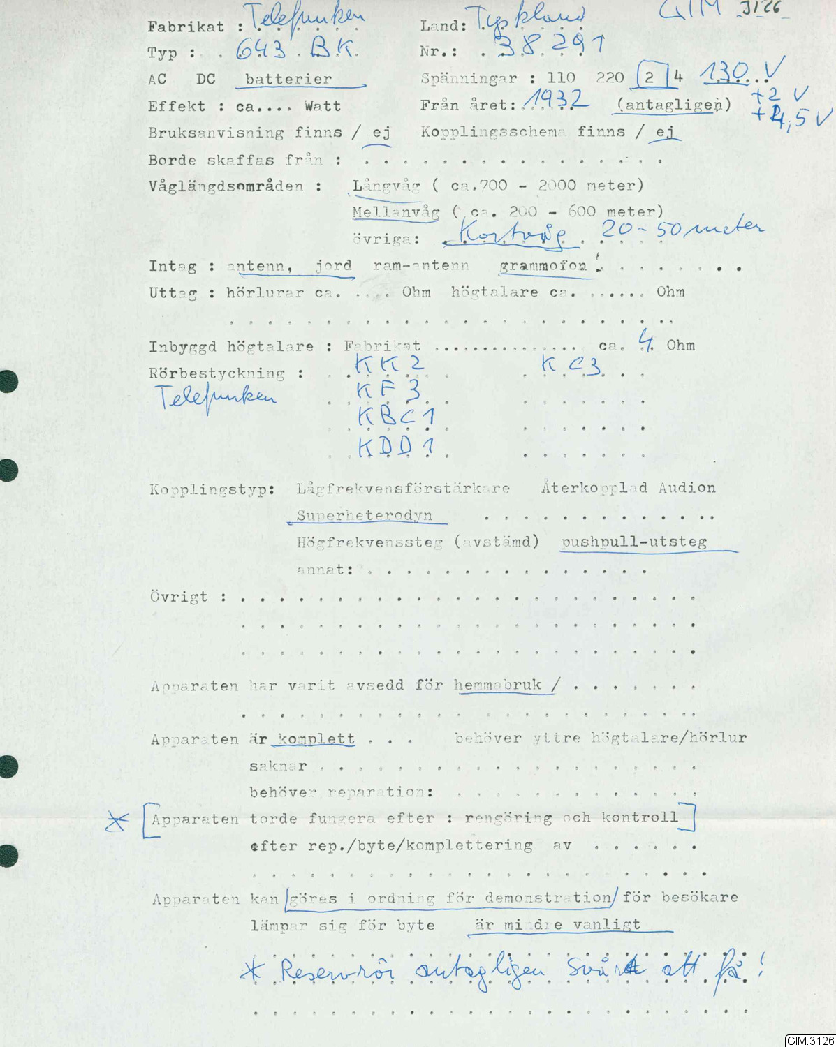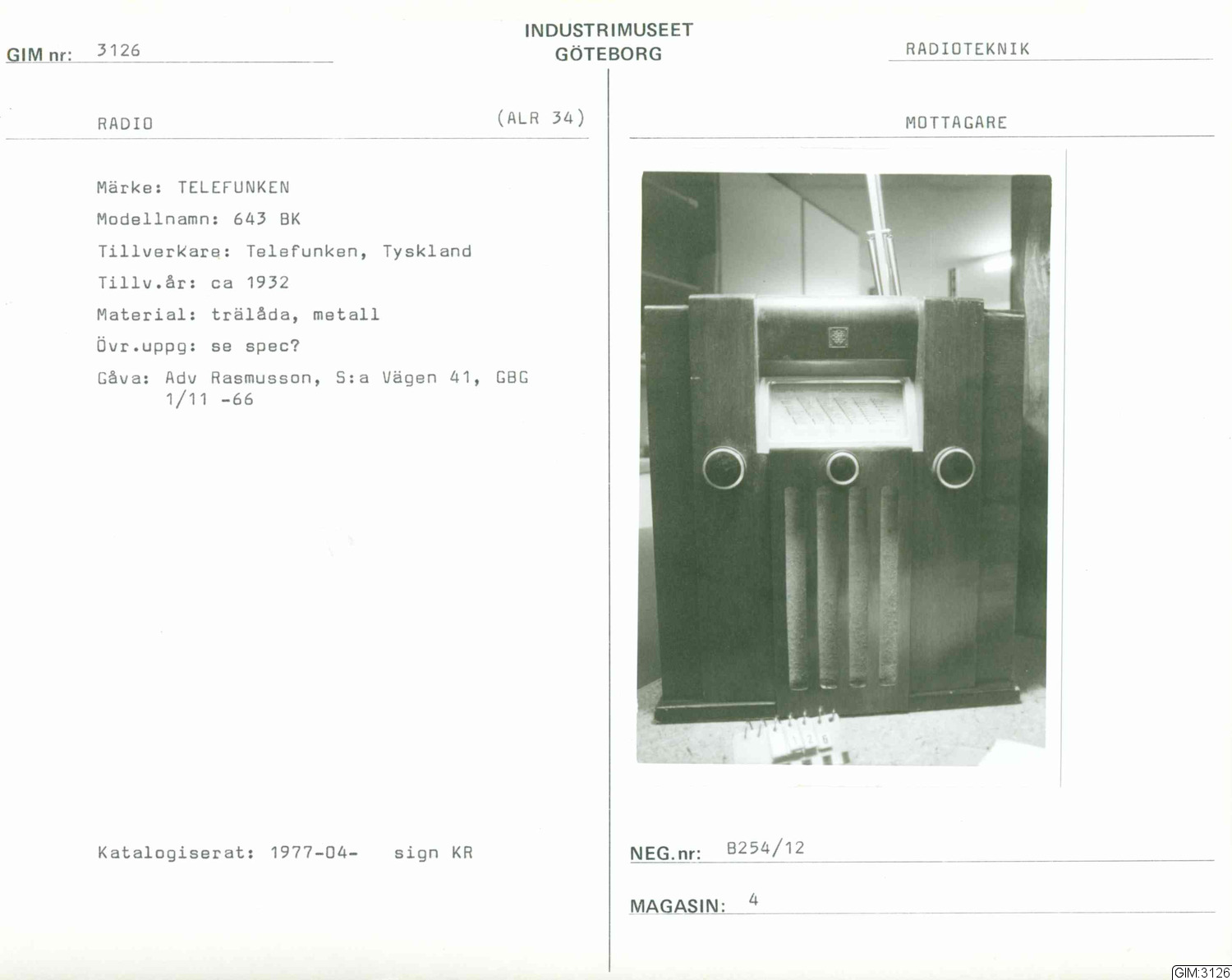 GIM:3126 :: radio, radio- och tv-kommunikation, rundradiomottagare