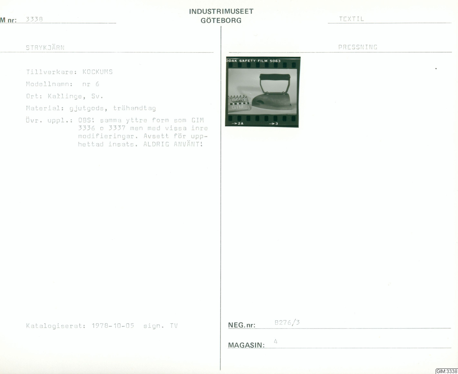 GIM:3338 :: strykjärn, pressning, strykning, mangling