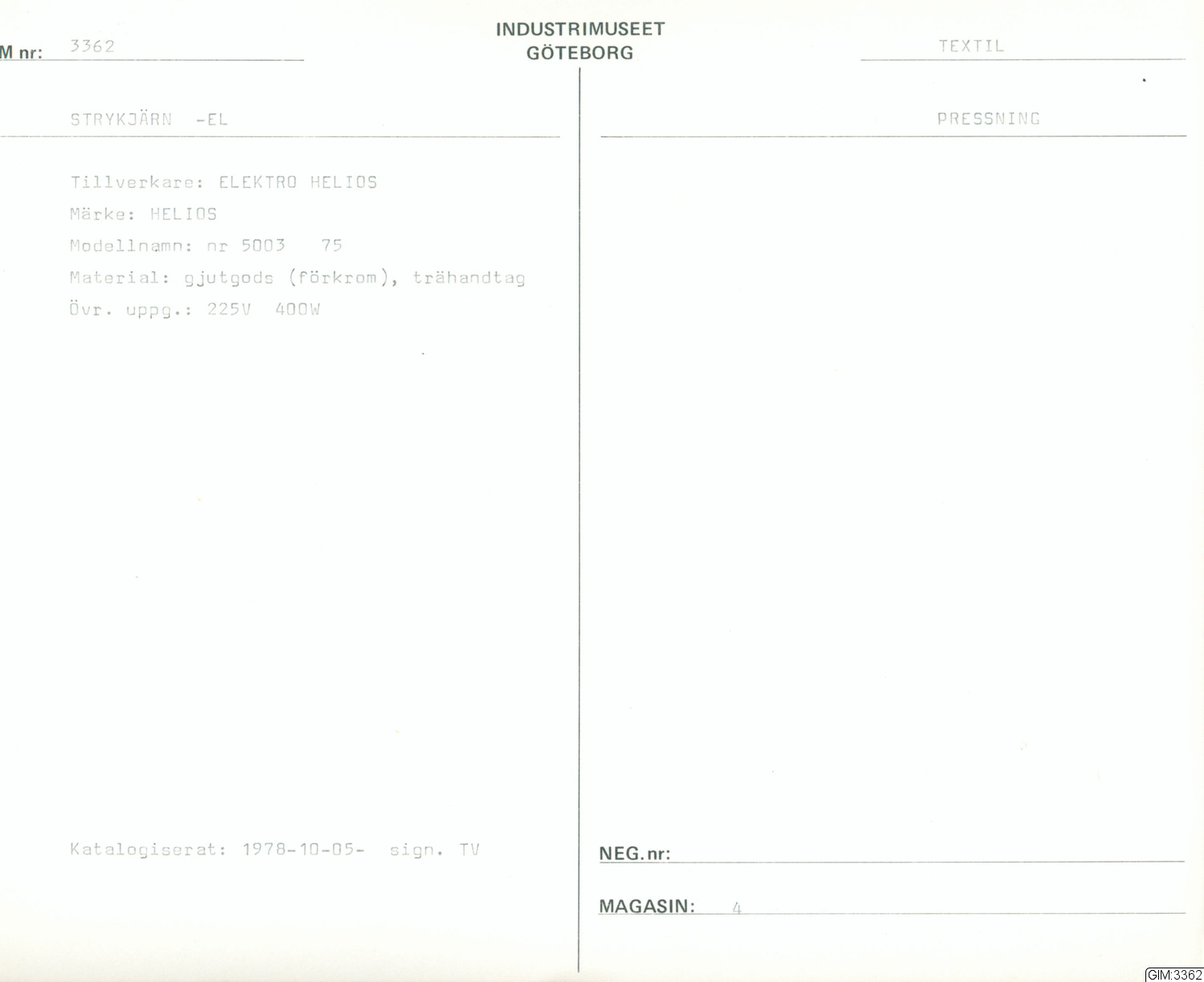 GIM:3362 :: strykjärn, pressning, strykning, mangling