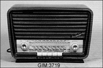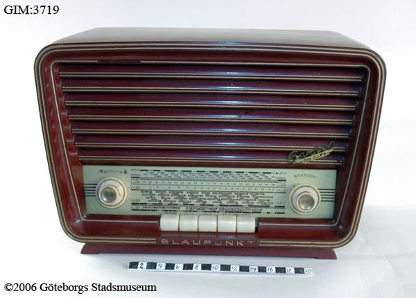 - Radiomottagare vinrött plastchassi, skala i glas, högtalare i fronten. LV MV KU KVL UKV, Sprickor i rattar spricka vänster kant, front rörbestyckad