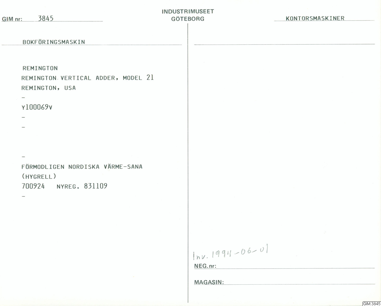 Plats för användningen: Förmodligen Nordiska Värme-Sanitet (Hygrell)